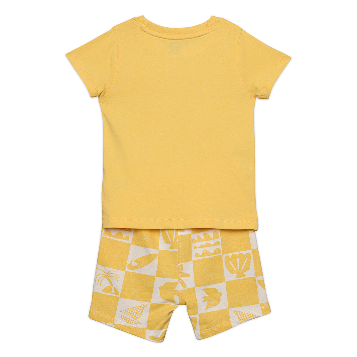Baby Boys Smiley Print Top and Tropical Check Shorts Set, Yellow