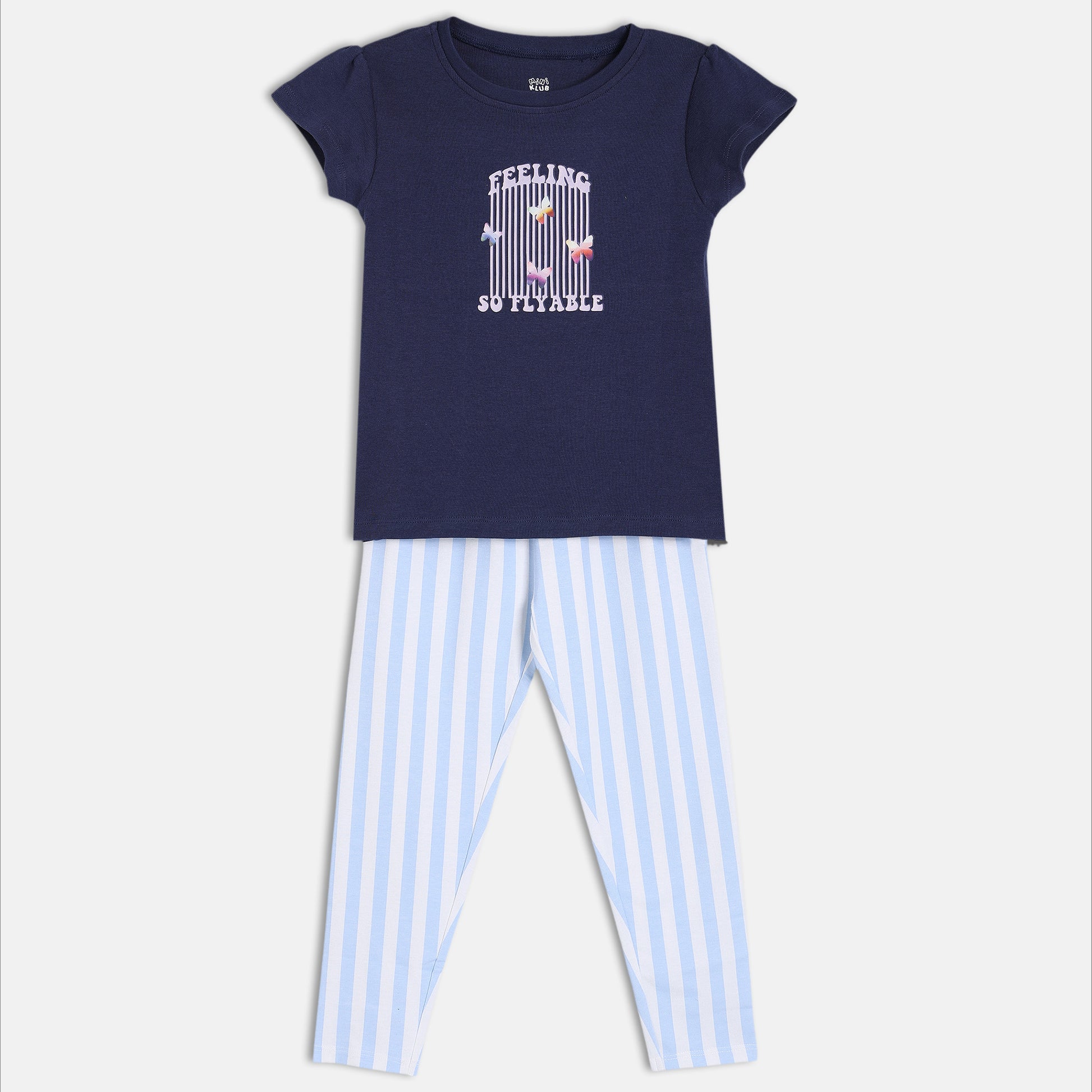 This stylish top and leggings set is designed to keep your little one comfortable and effortlessly cute all day long. Crafted from soft, breathable cotton, the set pairs a printed short sleeve top with striped leggings, making it perfect for everyday wear, playtime, or casual outings.