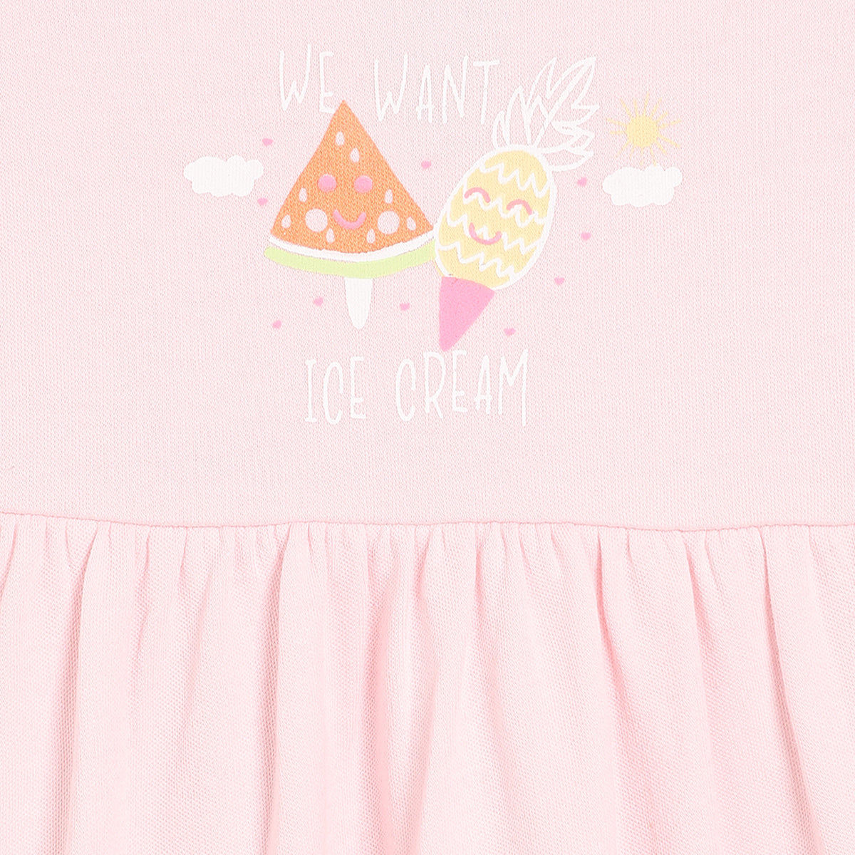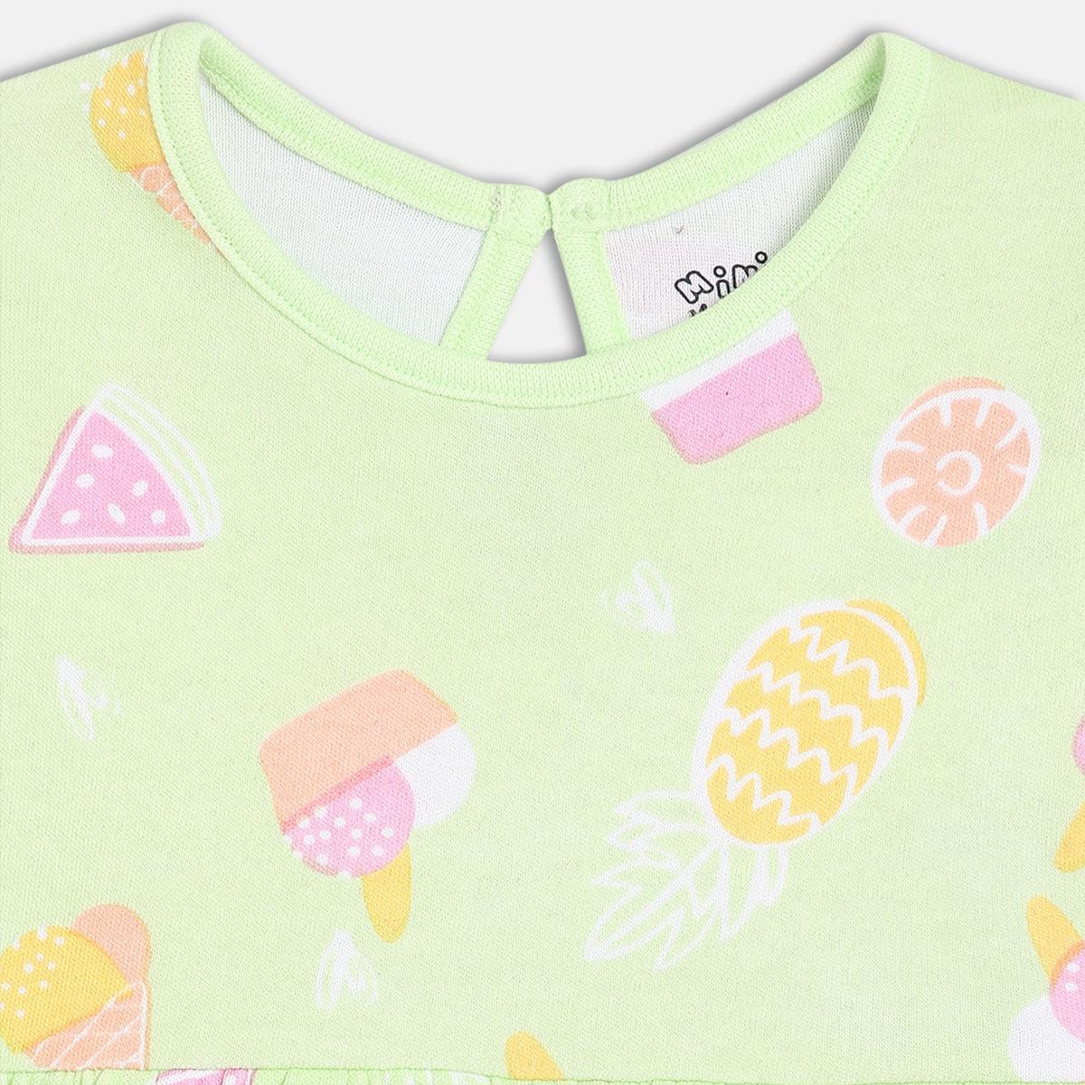 This delightful pack of knit dresses is designed to keep your little one comfy and cheerful all day. Made from soft cotton knit fabric, these dresses are gentle on delicate skin and allow easy movement. Featuring playful ice-cream inspired prints and a relaxed silhouette, they are perfect for everyday wear, playtime, or casual outings.