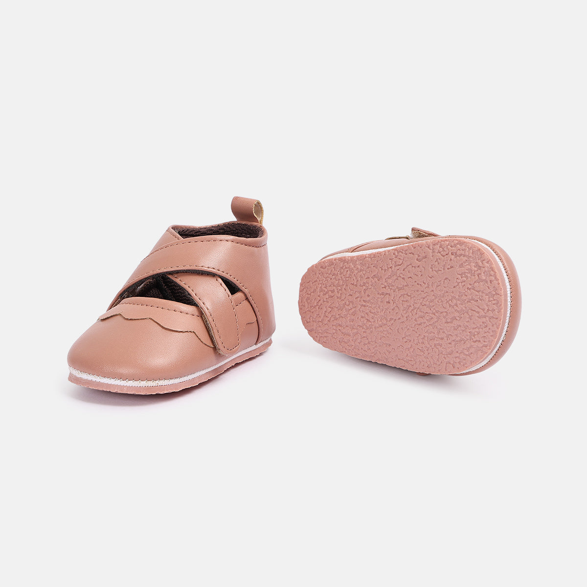 These baby girls soft sole shoes are designed to provide comfort and gentle support during early movement stages. Crafted with a soft upper and flexible sole, they allow natural foot movement while keeping little feet snug and secure. The easy strap closure ensures a comfortable fit and makes wearing effortless, making these shoes ideal for pre-walking and everyday use.