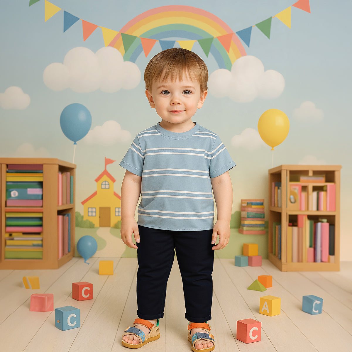 These dark blue solid denim pants for kids and babies are designed to blend style and comfort effortlessly. Made from soft cotton-blend fabric, they provide a gentle feel on delicate skin and freedom of movement all day long. Featuring a classic button closure, these pants offer a secure fit, while the simple solid design makes them easy to pair with tees, shirts, or jackets for a smart and casual look. Perfect for playtime, outings, or everyday wear