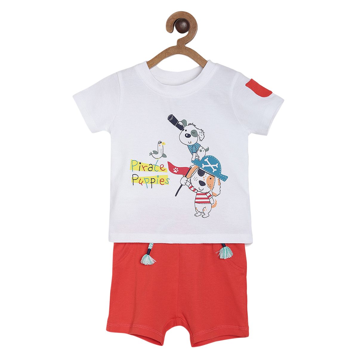 Pack of 2 t- shirt & shorts set - white & red for 0-3 Months
