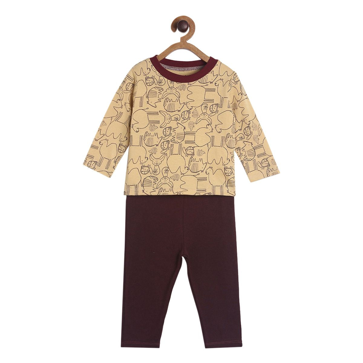 Pack of 2 t-shirt and knit bottom - light brown & choclate brown for 0-3 Months