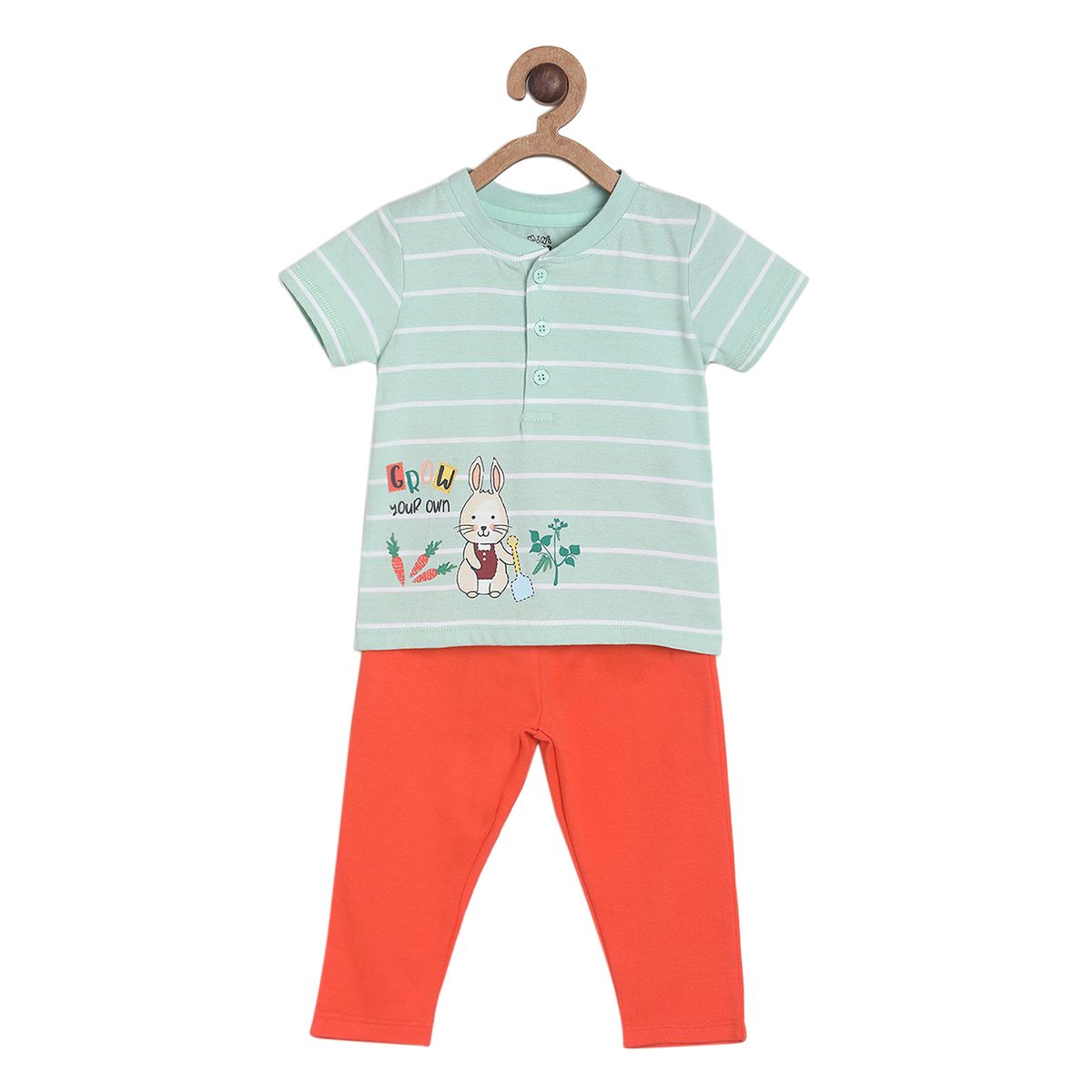 Pack of 2 tee and full length bottom - sky blue & bright red for 0-3 Months