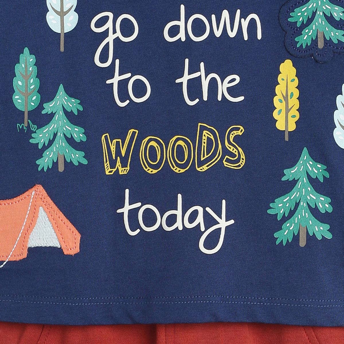 Pack of 2 t-shirt and full length bottom - blue and red for 0-3 Months
