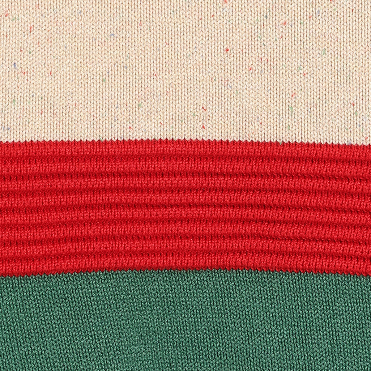 Keep your little one cozy and stylish with this multi-color striped knitted sweater. Crafted from soft, warm fabric, this sweater ensures comfort during chilly days while adding a pop of color to your baby’s winter wardrobe. It features broad color block stripes in beige, red, green, and navy, along with shoulder button closures for easy dressing. The ribbed hem, cuffs, and neckline provide a snug fit, making it perfect for everyday wear or family outings.