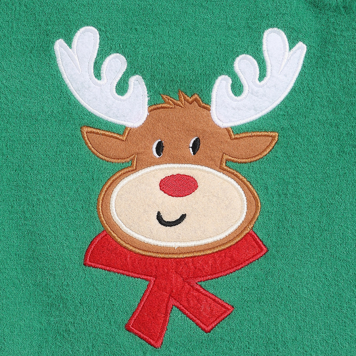 Get your little one winter-ready in this adorable green knitted sweater featuring a cute reindeer appliqué at the front. Made from soft, cozy knit fabric, it keeps your child warm and comfortable during chilly days. The shoulder button closure ensures easy dressing, while the ribbed neckline, cuffs, and hem provide a snug fit. Perfect for festive occasions or everyday winter wear, this sweater adds a playful touch to your baby’s seasonal wardrobe.
