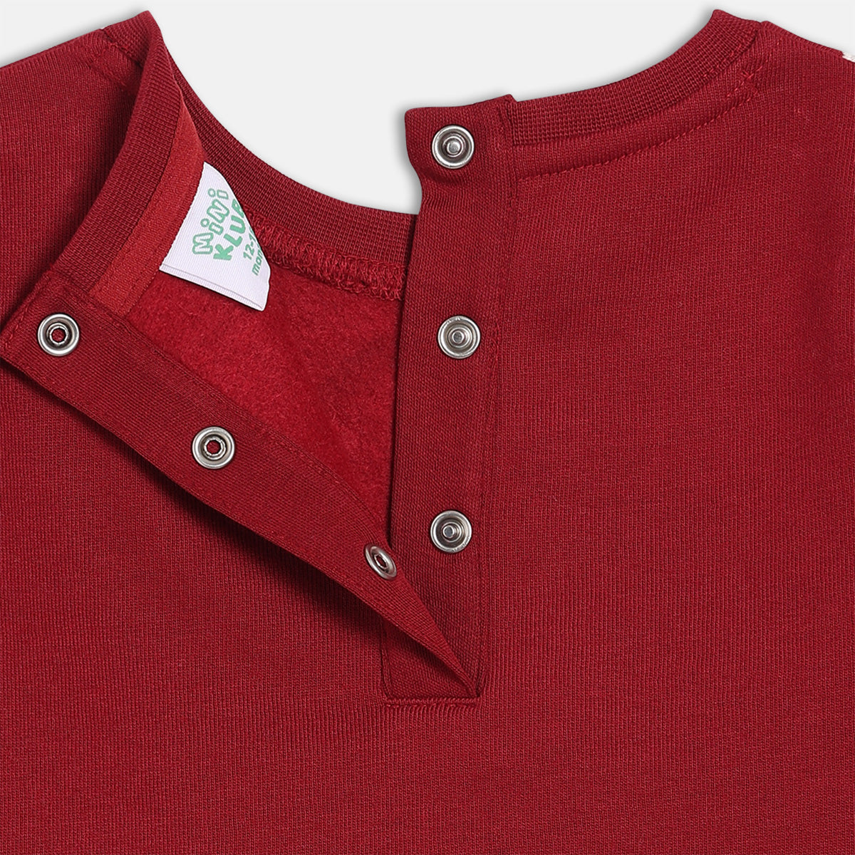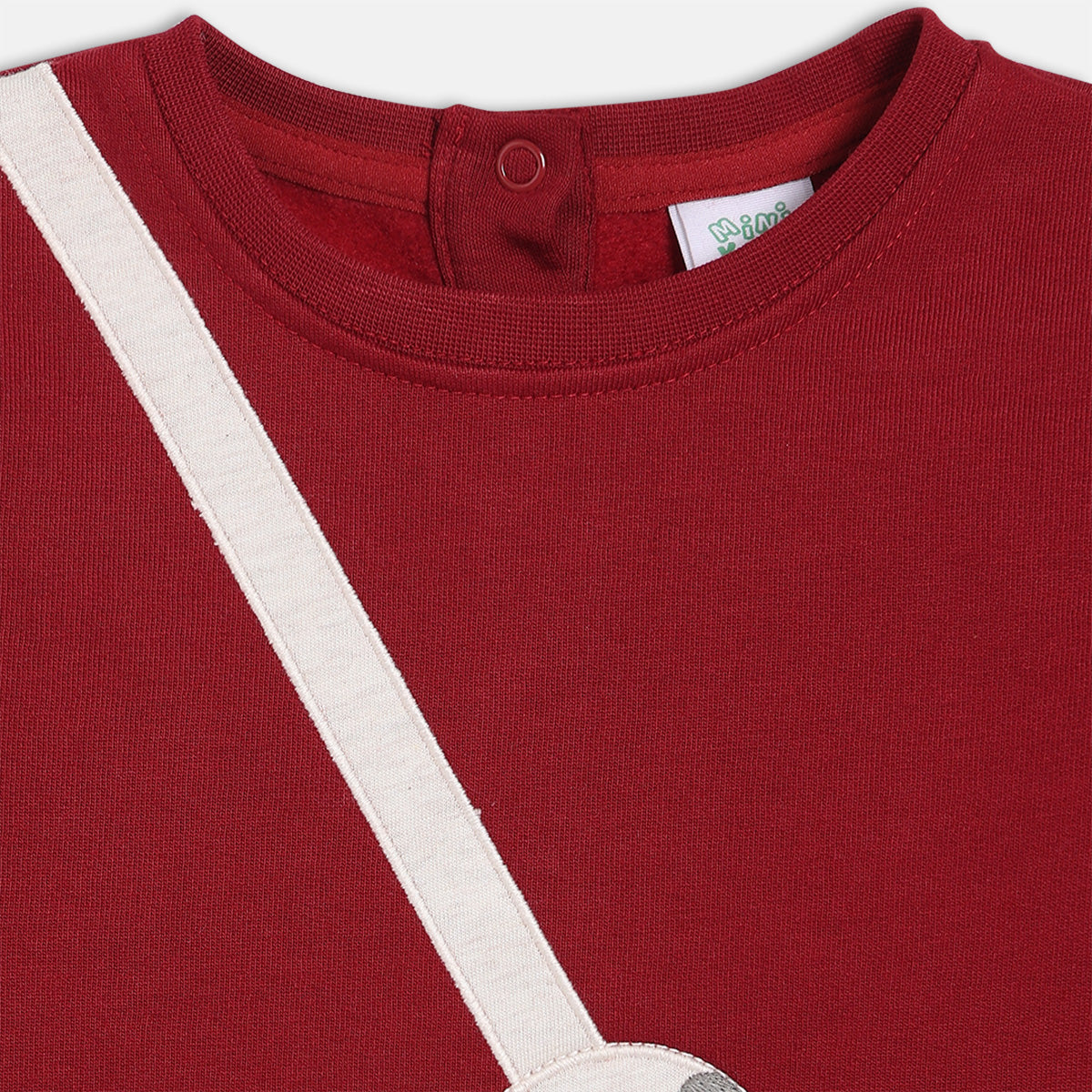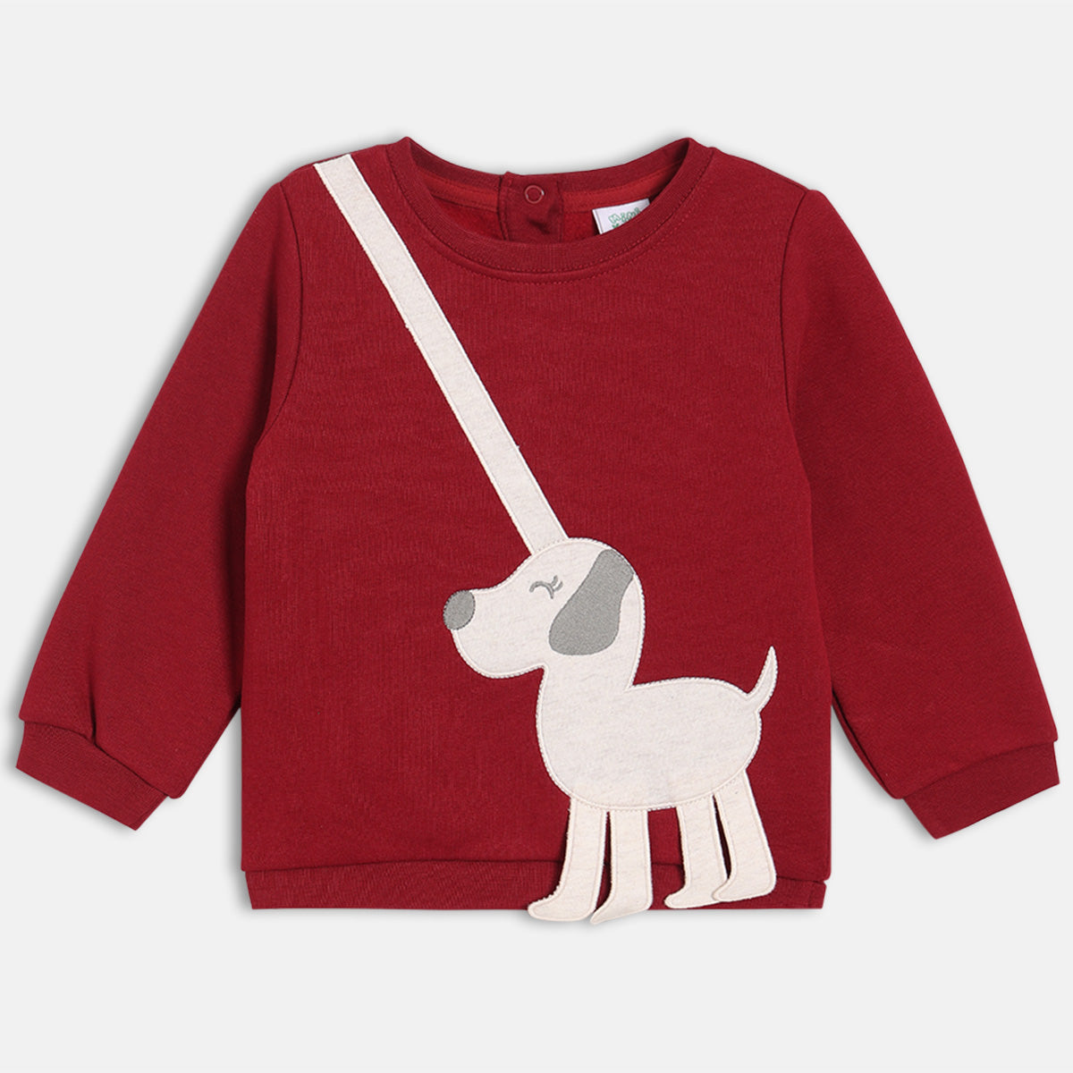 Dress your little one in playful comfort with this adorable two-piece set. The outfit includes a maroon full-sleeve top featuring a cute dog applique design that extends onto the cream quilted pants, creating a fun and coordinated look. Made from soft, breathable fabric, this set ensures warmth and ease of movement — perfect for playtime or casual outings.