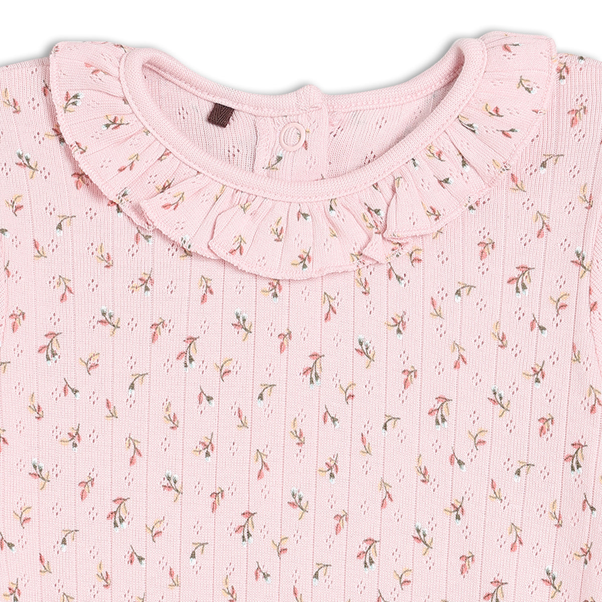 - Ditsy Print Bodysuit: A cheerful all-over ditsy print, styled with a frill collar, gathered sleeves, and elasticated cuffs.
