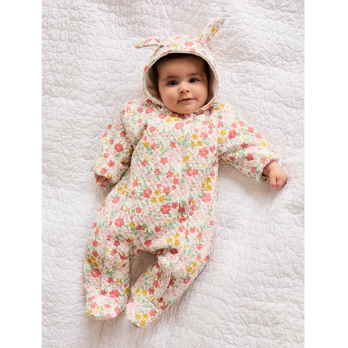 Baby Girls Floral Printed Hooded Pramsuit, Multicolour