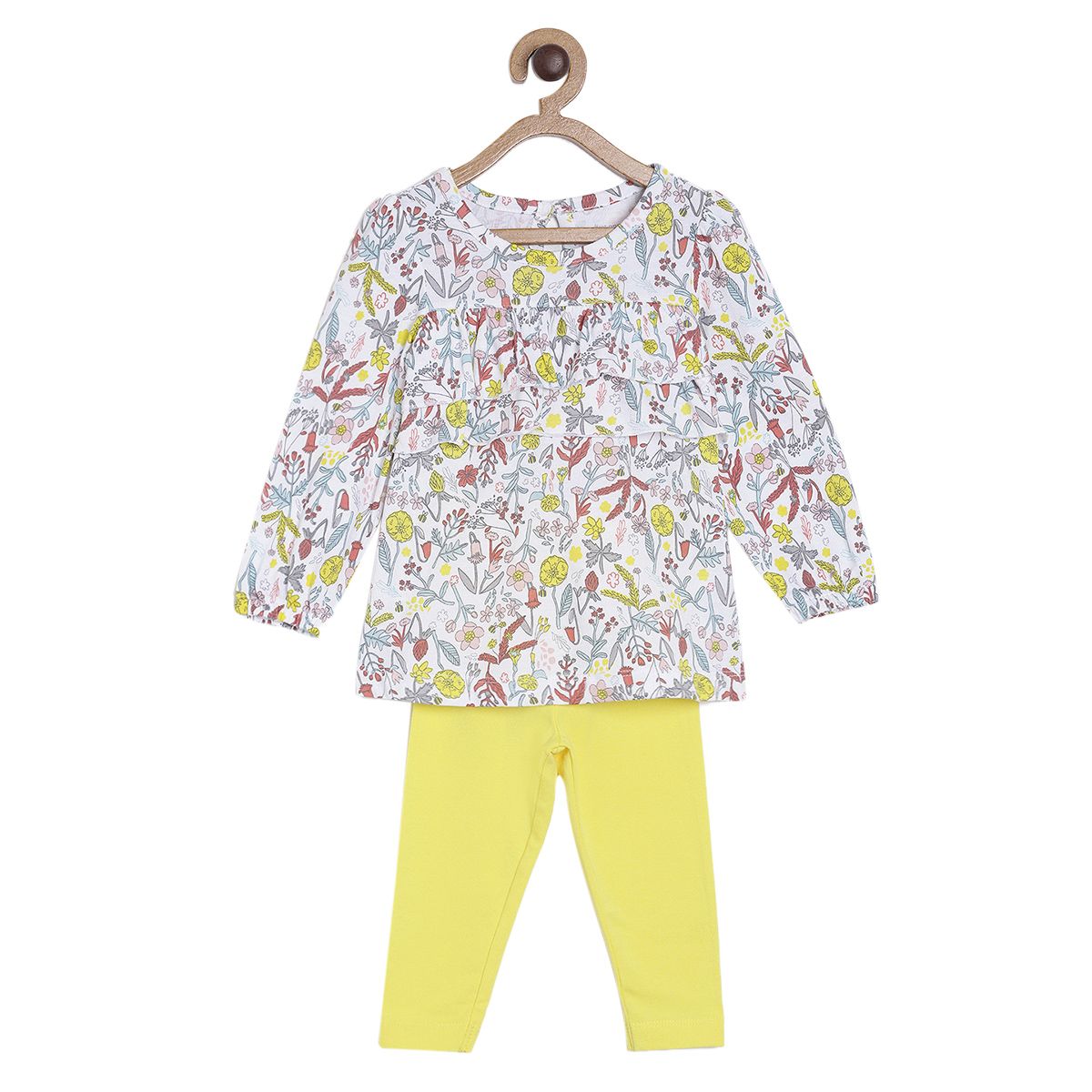 Pack of 2 knit top and knit bottom - white & yellow for New Born
