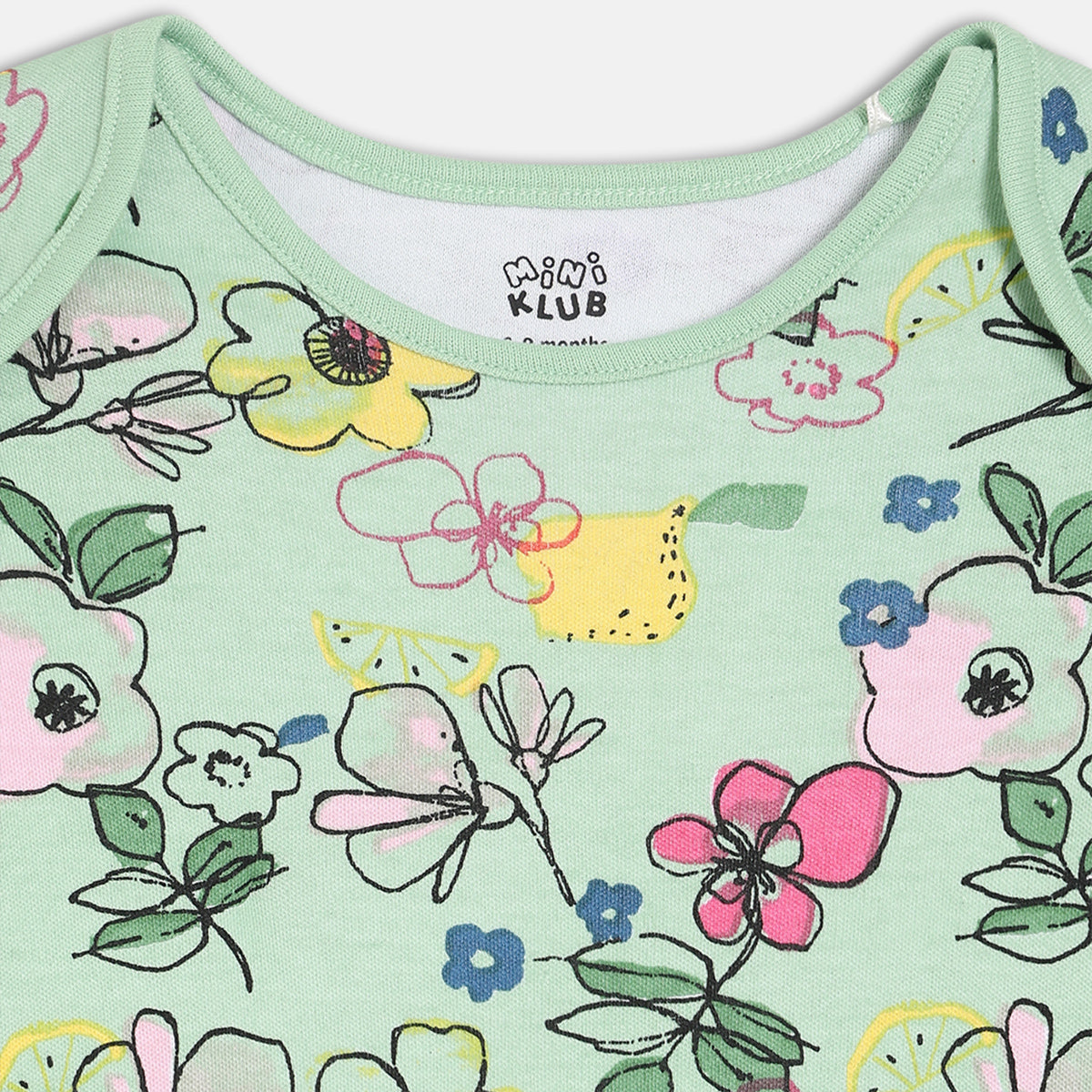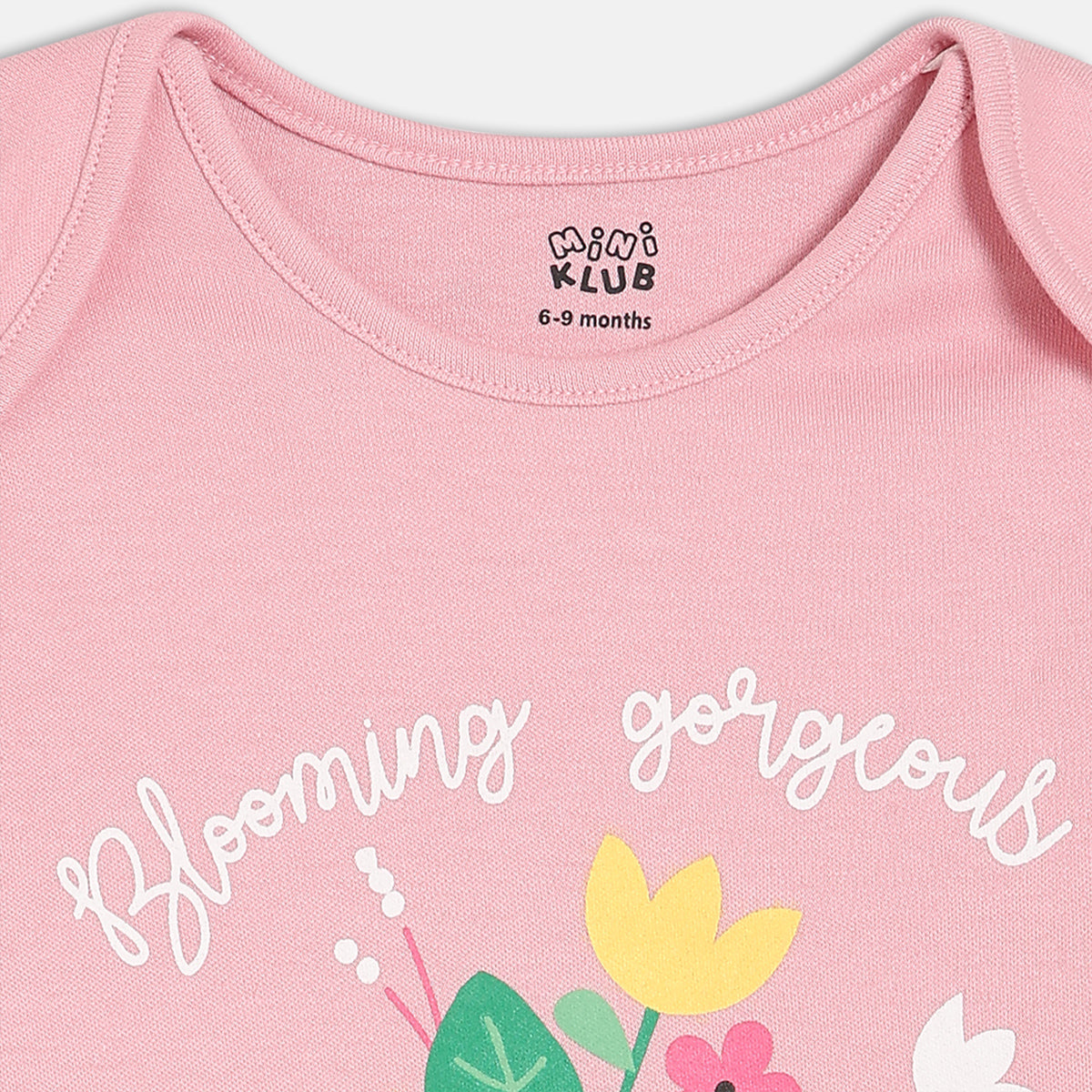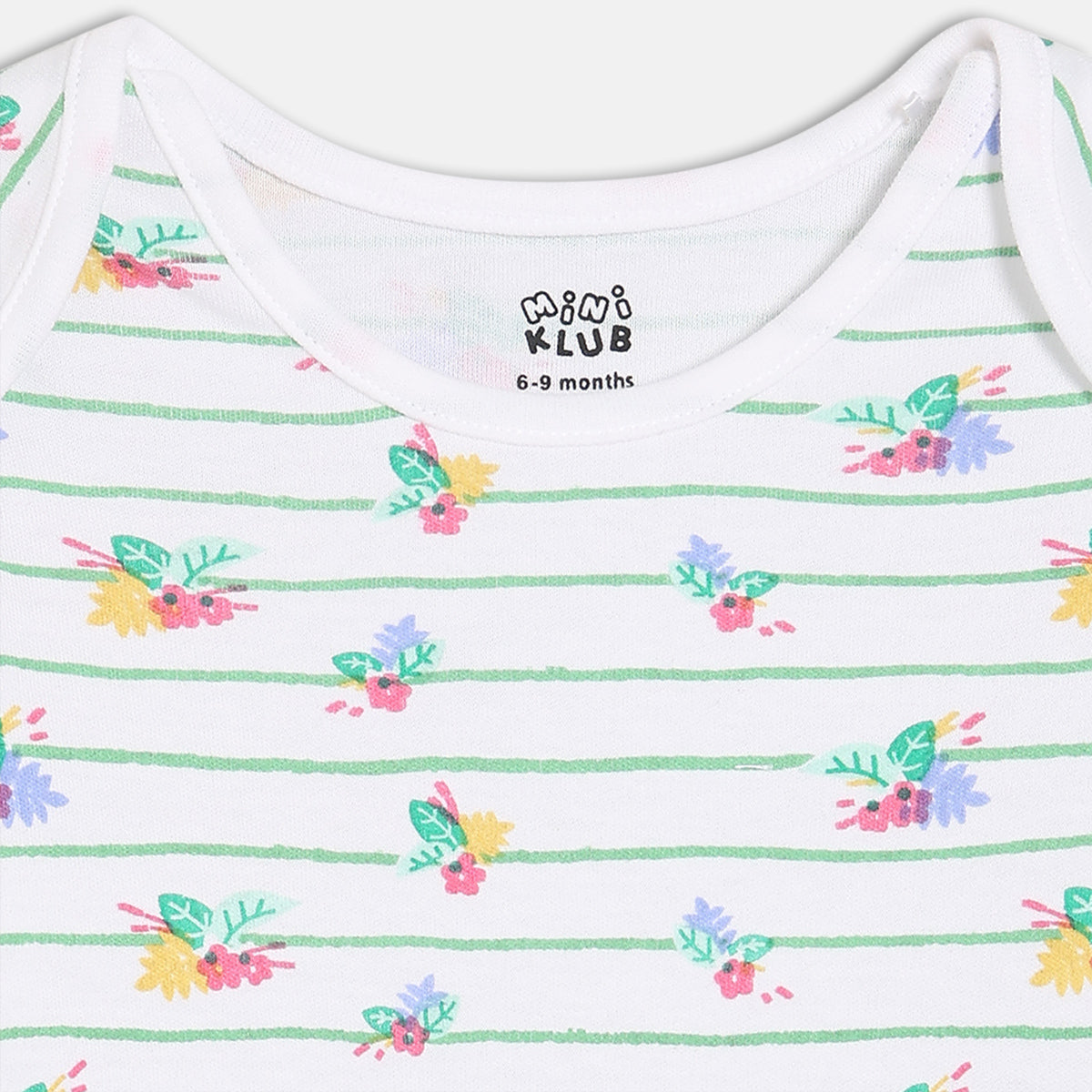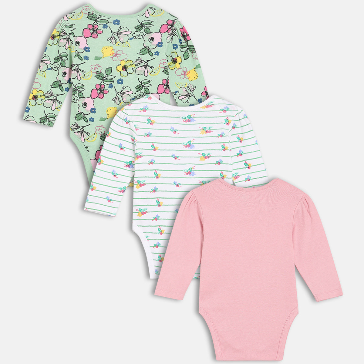 Girls Pack Of 3 Round Neck Full Sleeve Body Suit - Multi