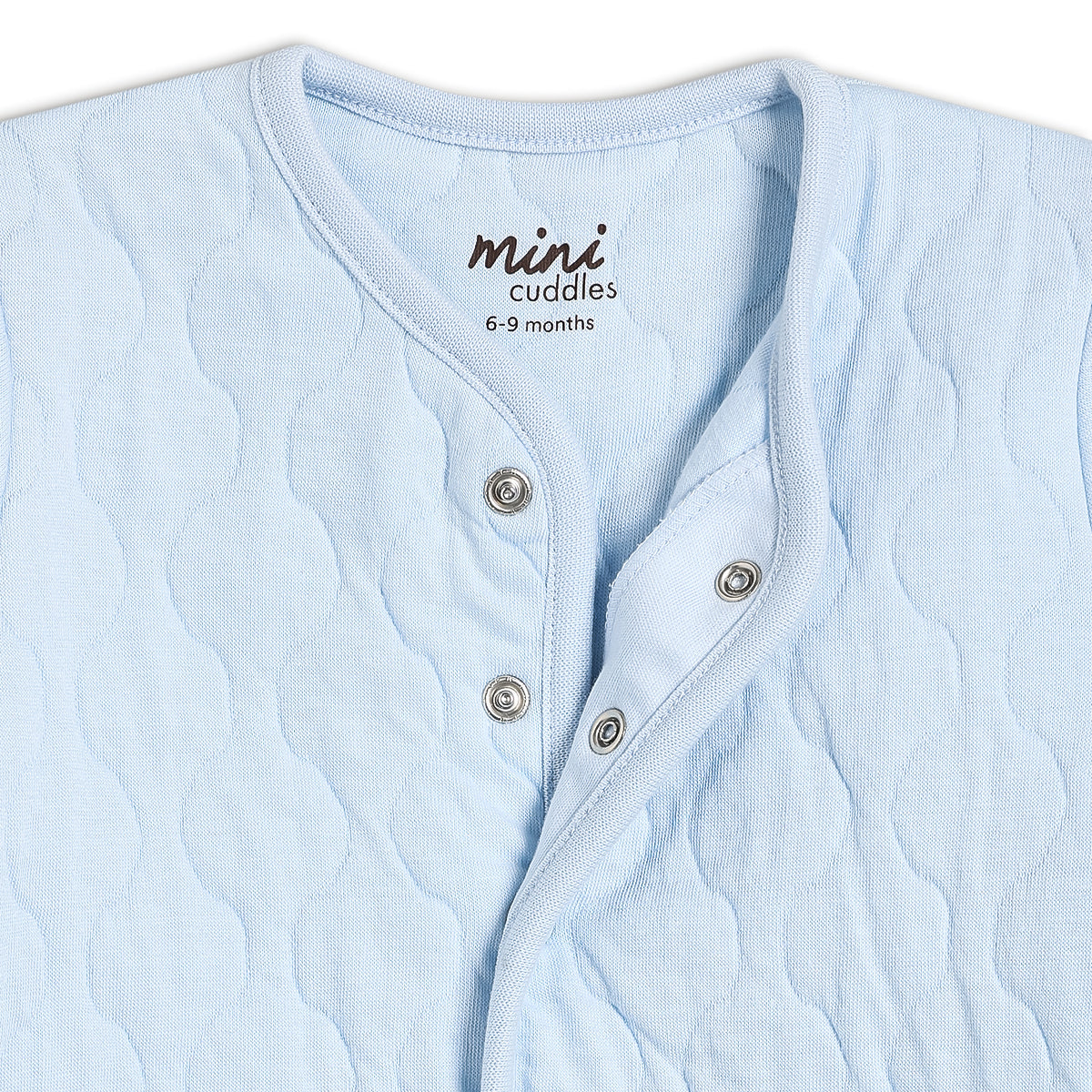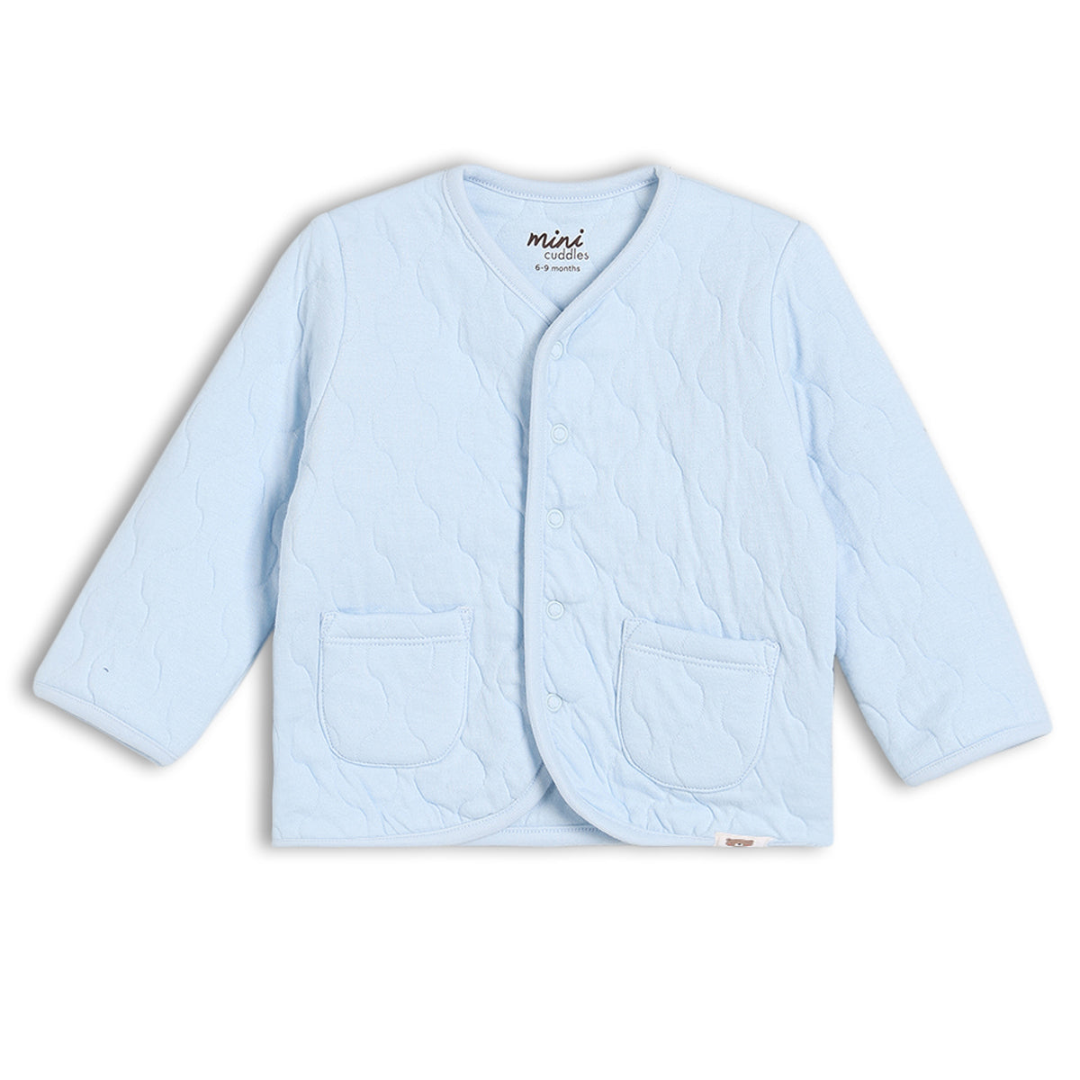 - Jacket – Lightly padded quilted design in pastel blue, featuring handy pockets and easy popper fastening.