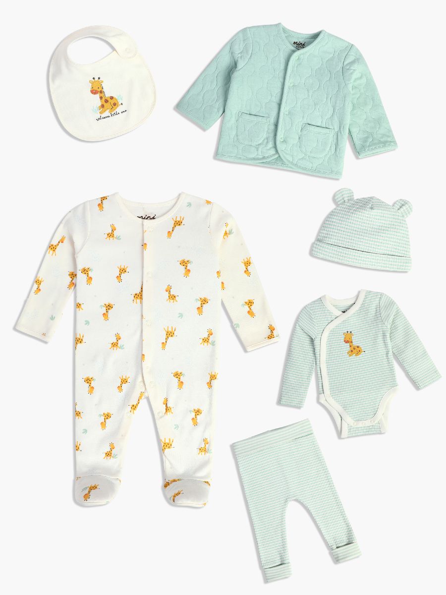 - Package Content: 1N SLEEPSUIT 1N BODYSUIT 1N BOTTOM 1N FRONT OPEN 1N HAT 1N BIB