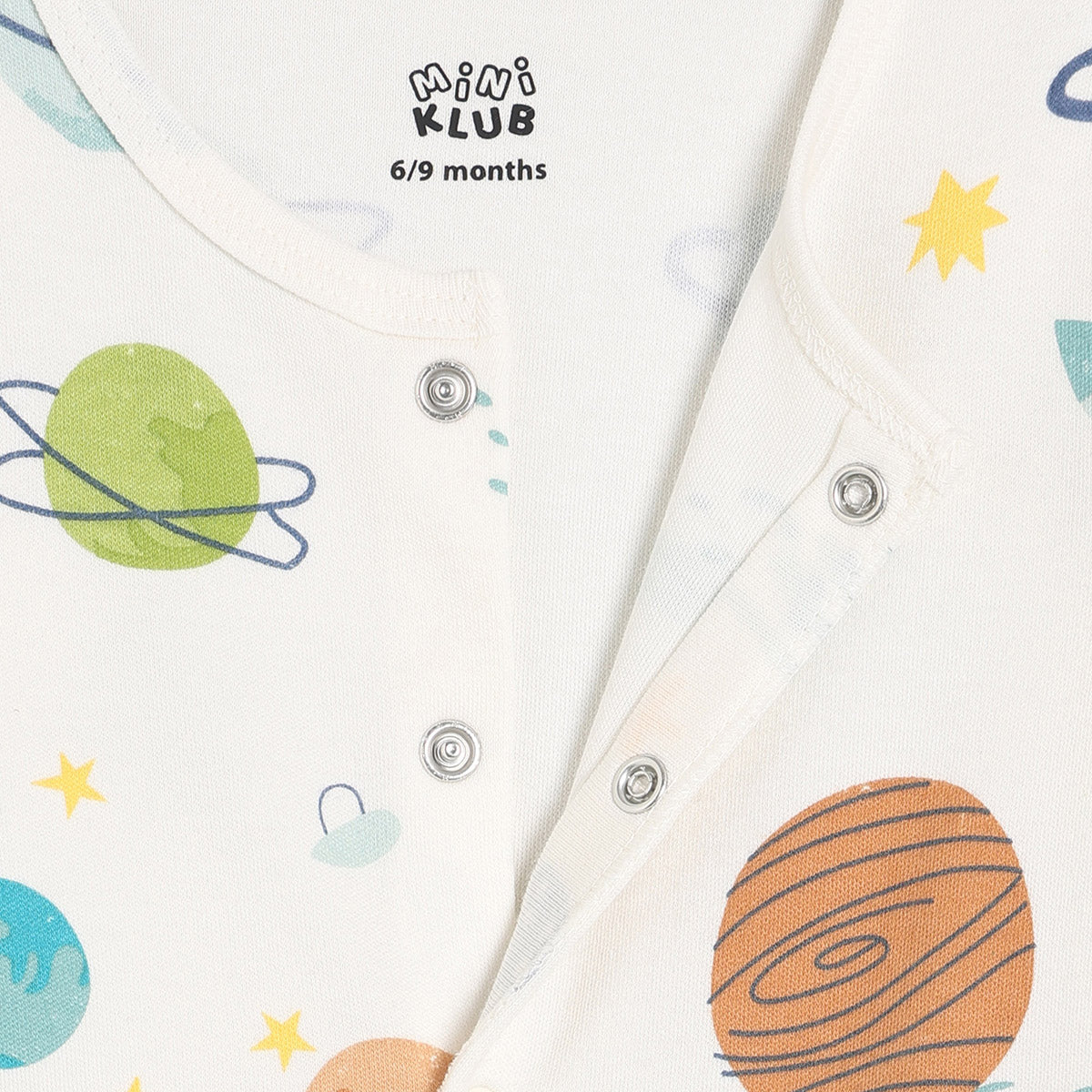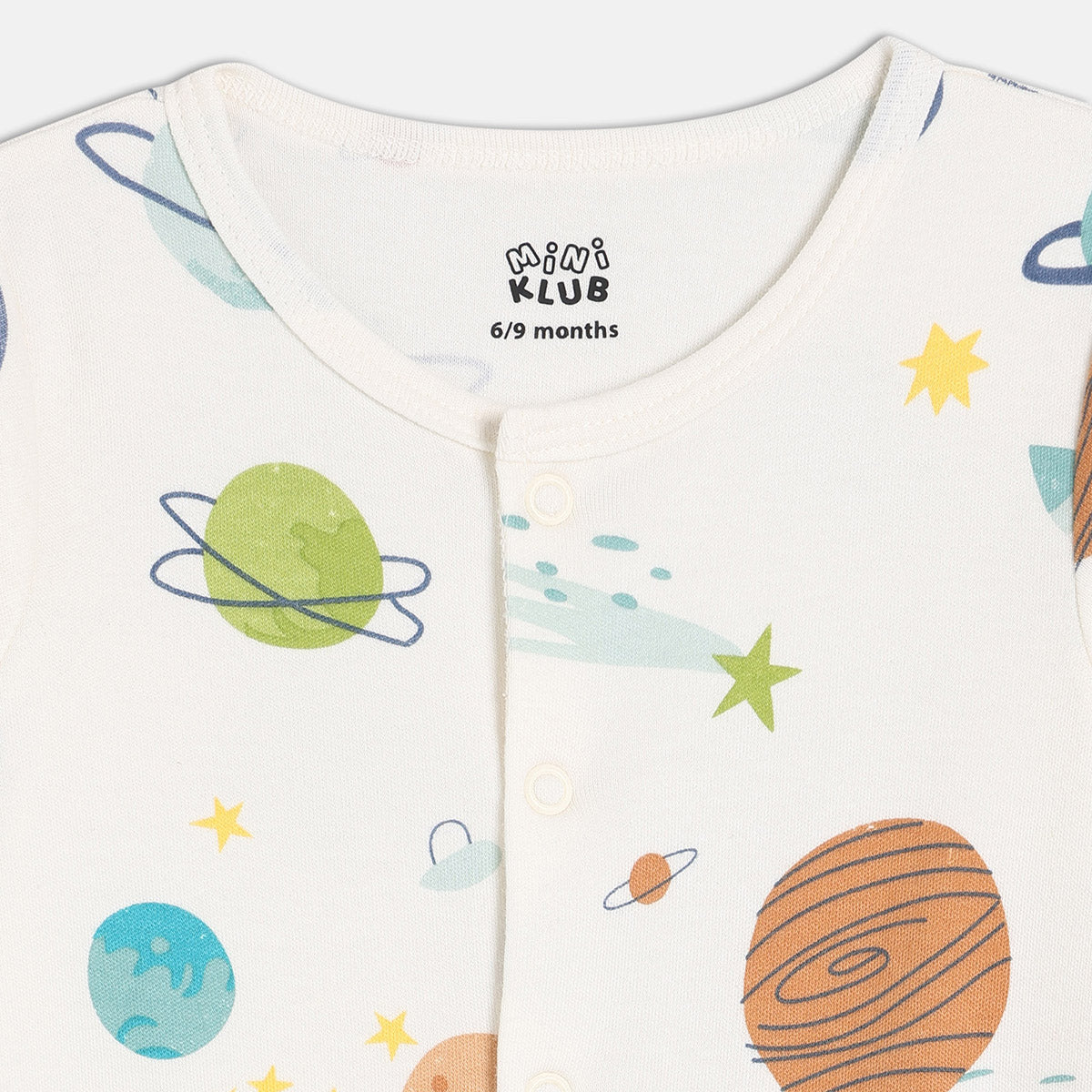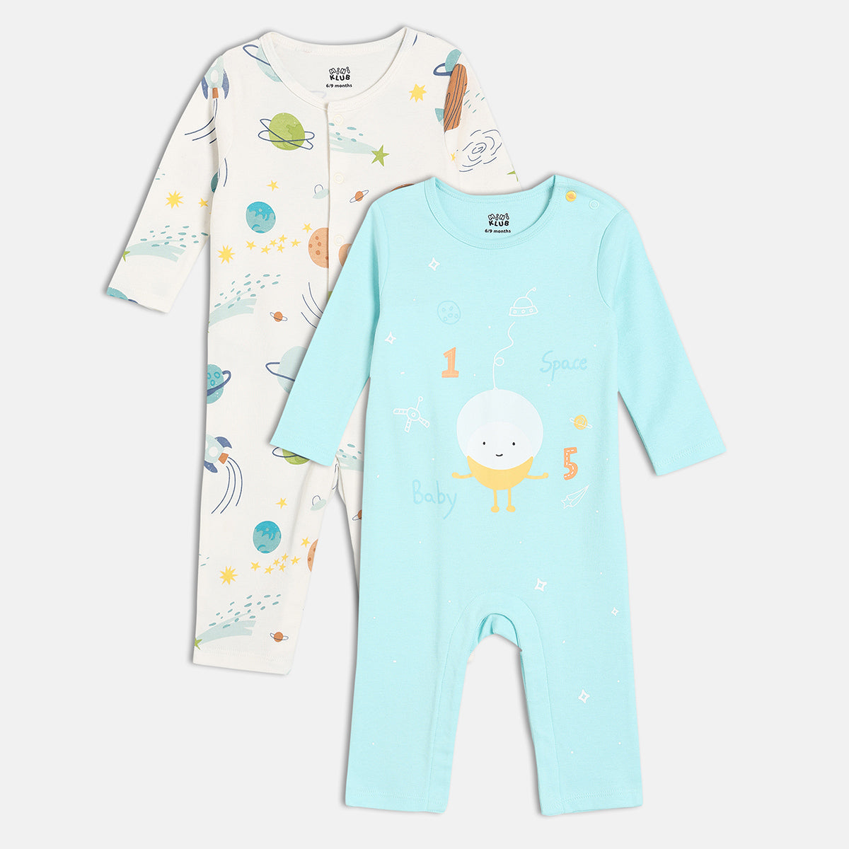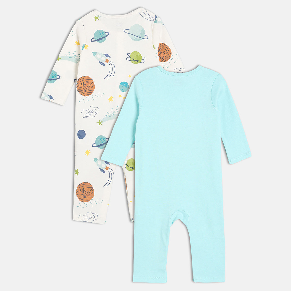 Boys Cotton Pack Of 2 Full Sleeves Planets Printed Rompers - White & Blue