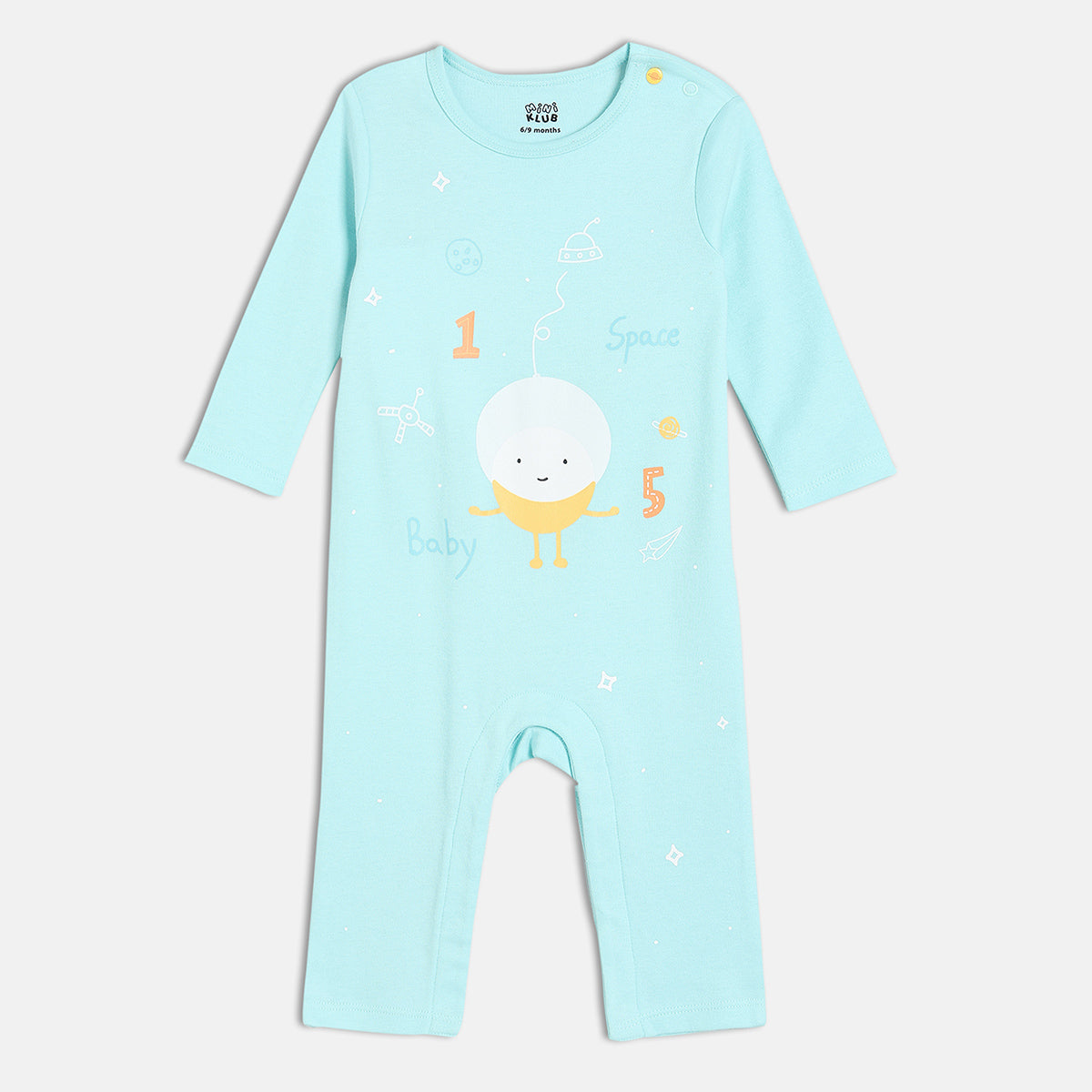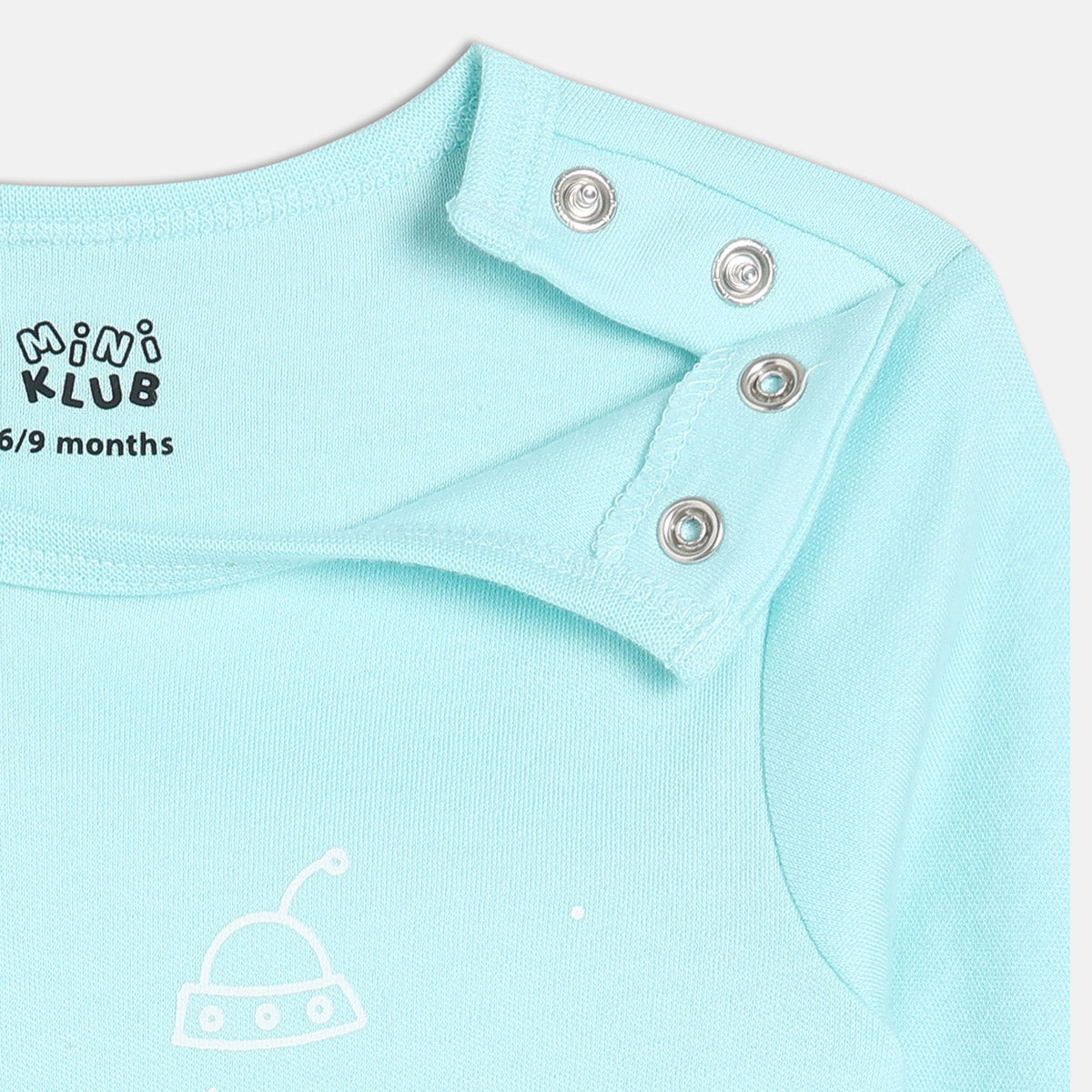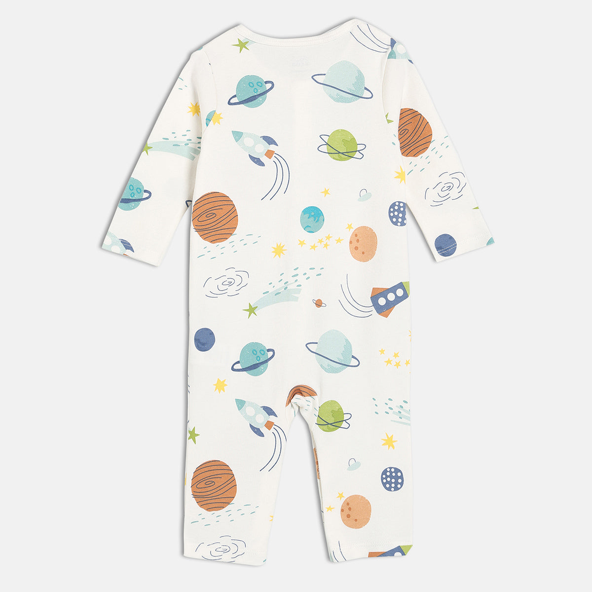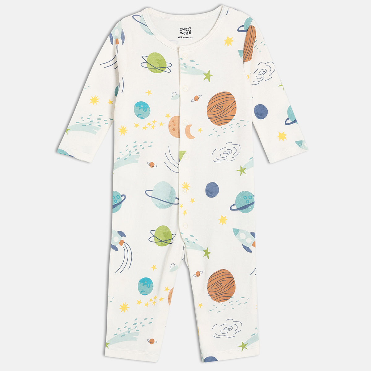 Boys Cotton Pack Of 2 Full Sleeves Planets Printed Rompers - White & Blue