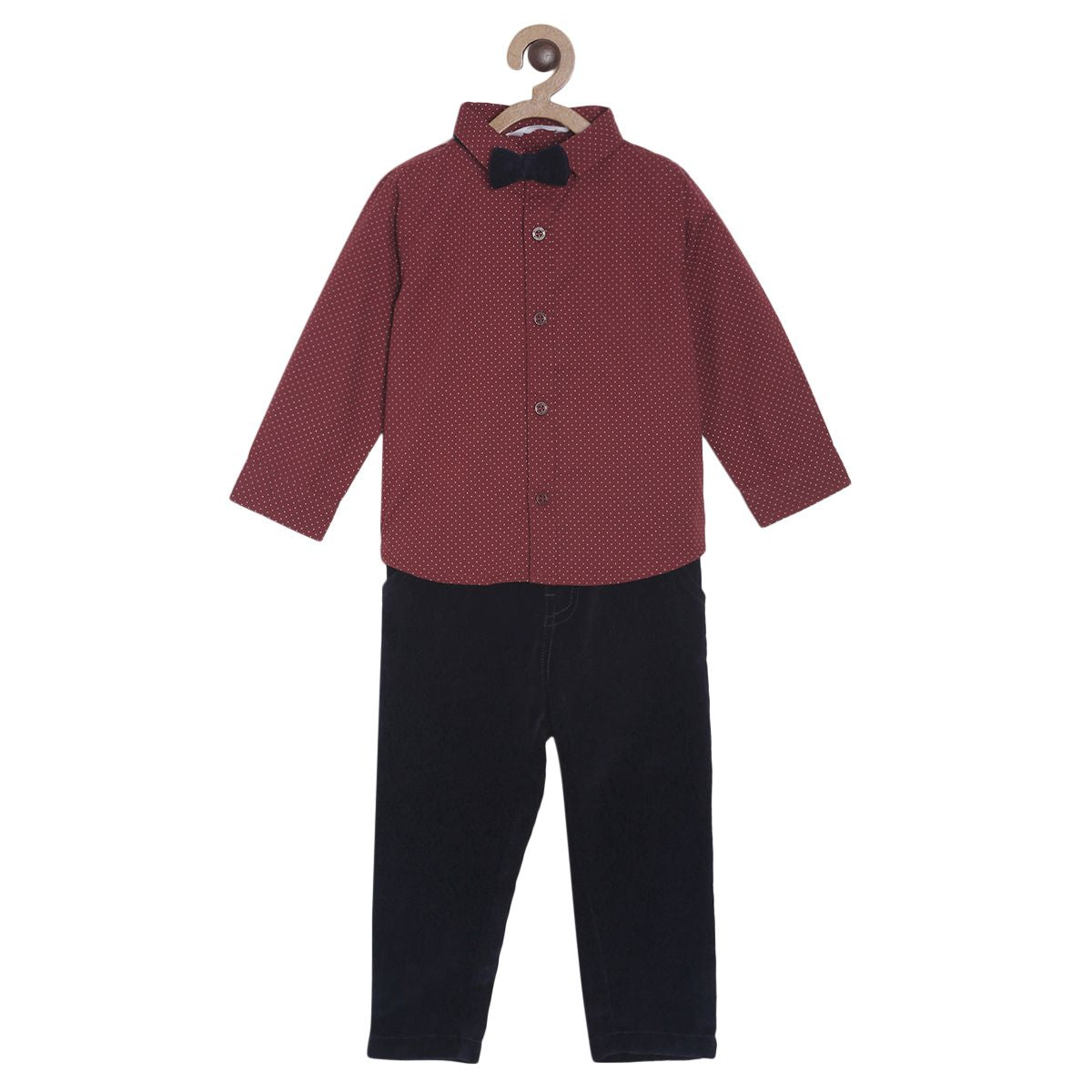 Pack of 3 shirt & knit bottom - maroon & black for 3-6 Months