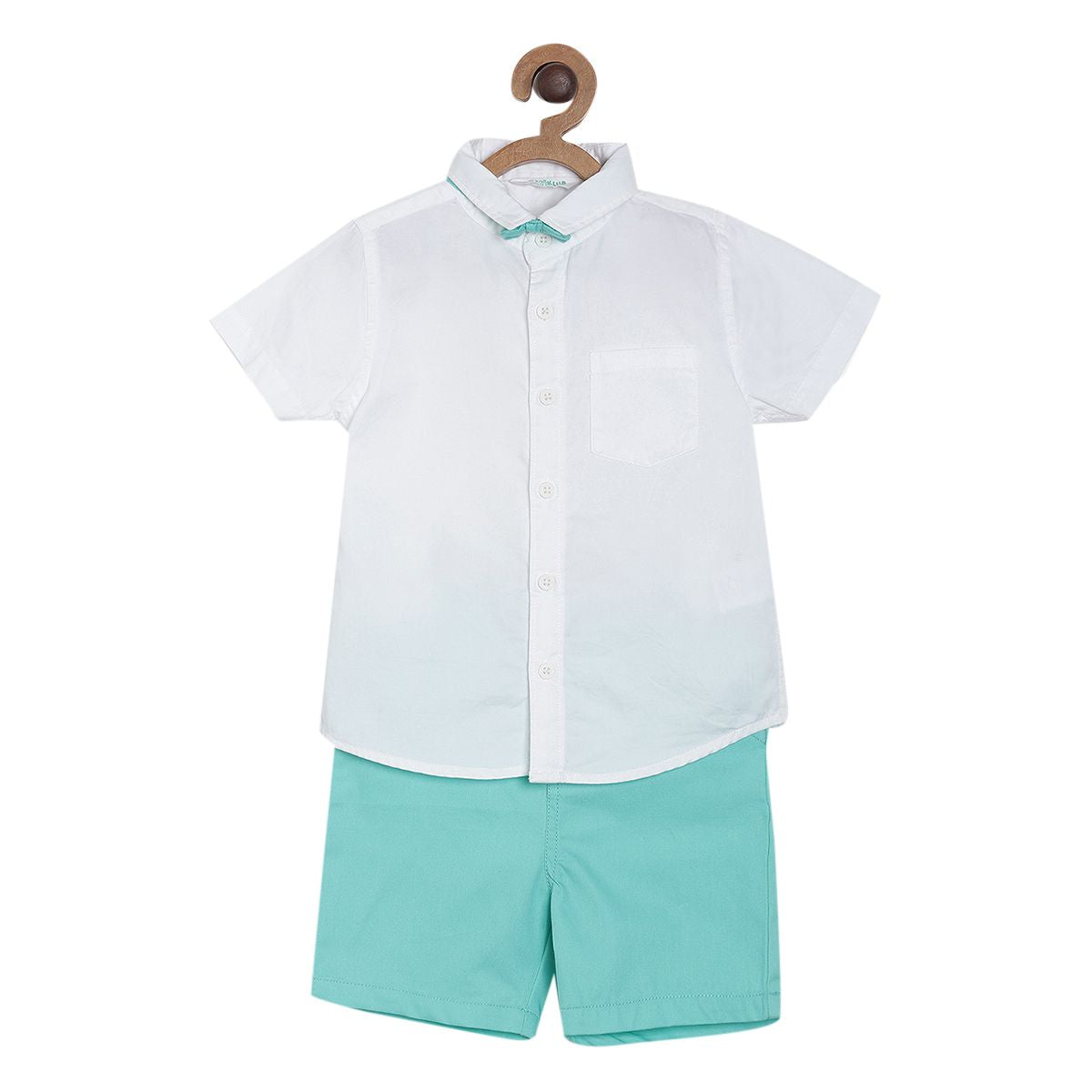 Pack of 3 woven shirt and woven shorts - white & mint green for 3-6 Months