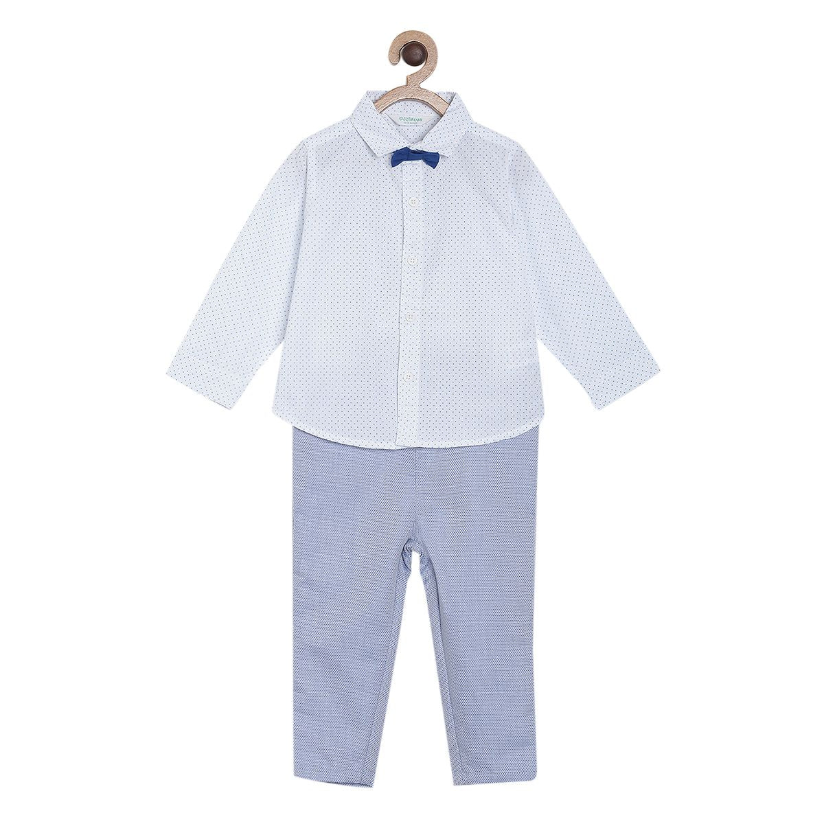 Pack of 3 woven shirt&woven trouser - white & blue for 3-6 Months