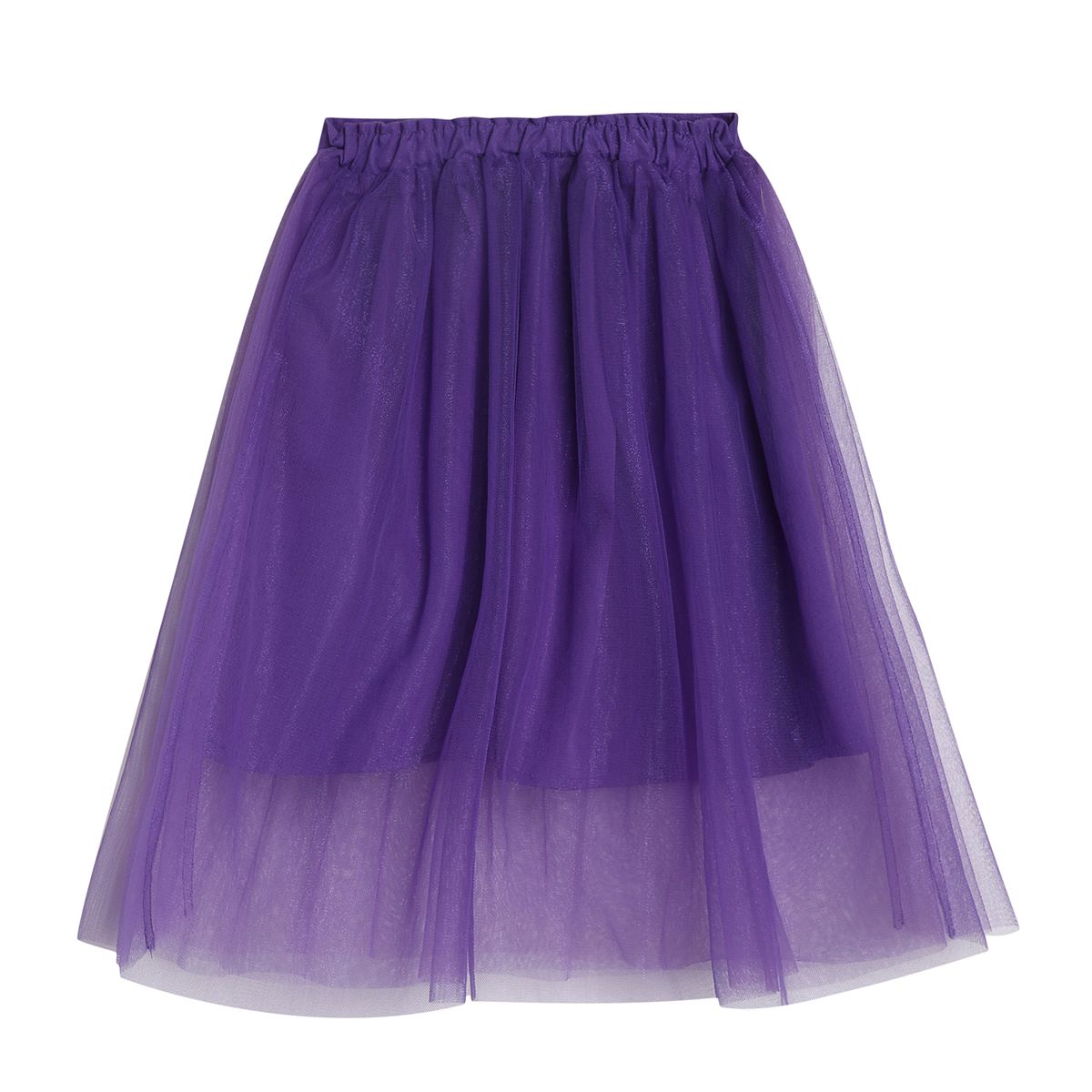 Girls Printed Sleeveless Party Dress with Tulle Skirt, Purple
