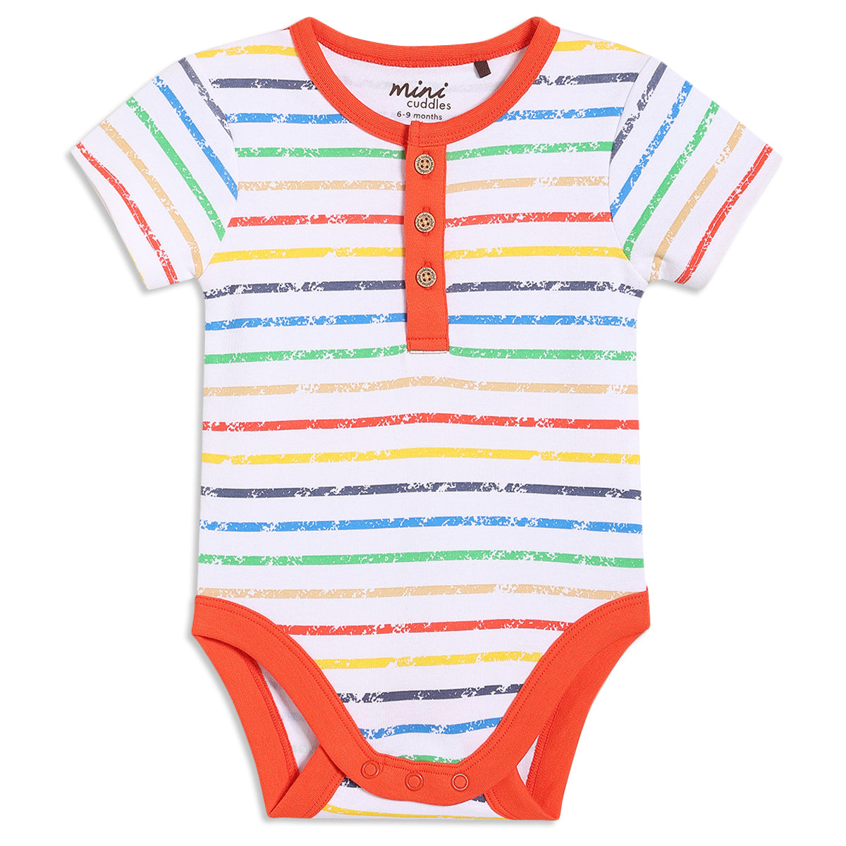 Keep your little one comfy through every cuddle, nap and playtime with this pack of three printed bodysuits. Designed for everyday ease, the set includes a striped bodysuit with contrast trims, a blue all-over printed bodysuit, and a white wrap-style bodysuit with playful motifs. Each piece is thoughtfully made to offer a gentle feel on baby’s skin while ensuring easy dressing and diaper changes throughout the day.