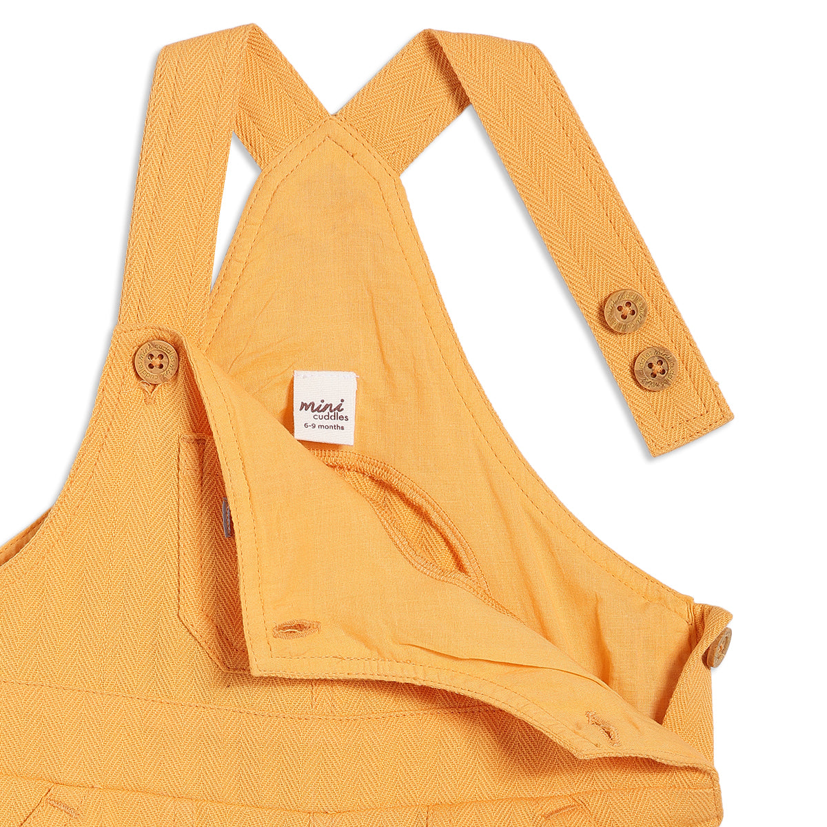 This adorable dungaree set is designed to bring comfort and playful charm to your little one’s everyday look. The set includes a soft short-sleeve T-shirt with cheerful dinosaur illustrations, paired with solid yellow dungaree shorts for a cute layered style. Adjustable shoulder straps with button fastening ensure a comfortable fit, while the relaxed silhouette allows easy movement for active babies.