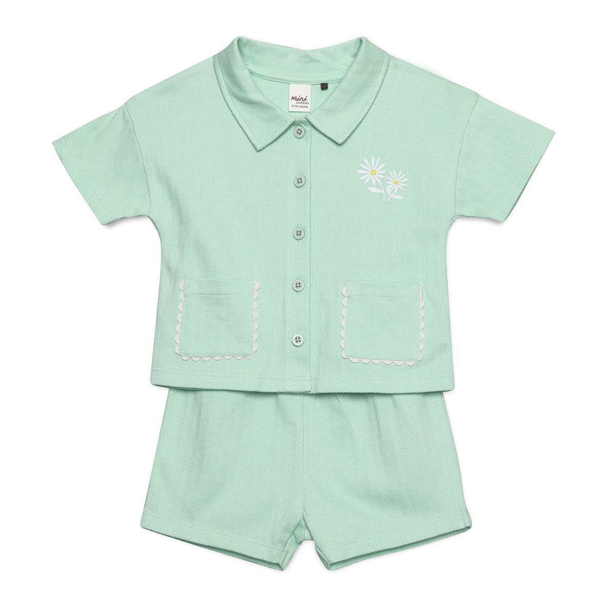 Baby Girls Daisy Embroidered Shirt and Shorts Coordinate Set, Mint Green