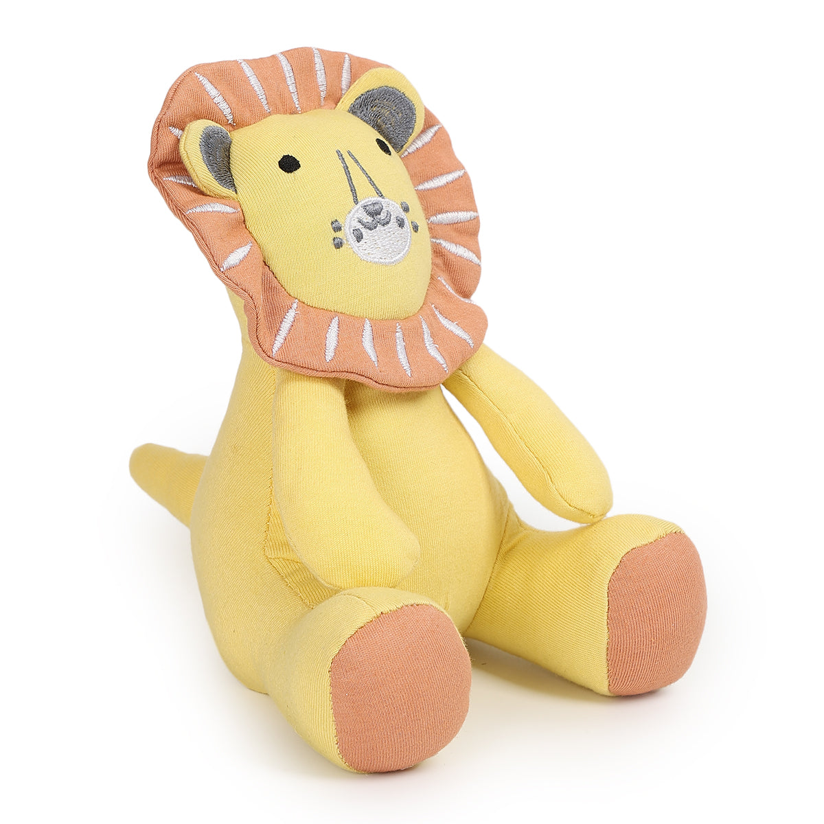 This adorable lion soft toy is designed to become your baby’s comforting companion during playtime and cuddle moments. Crafted in a cheerful yellow shade with a soft peach-toned mane, it features delicate embroidery details that add a charming character appeal. The plush construction feels gentle to touch, making it ideal for little hands to hold, hug and explore throughout the day.
