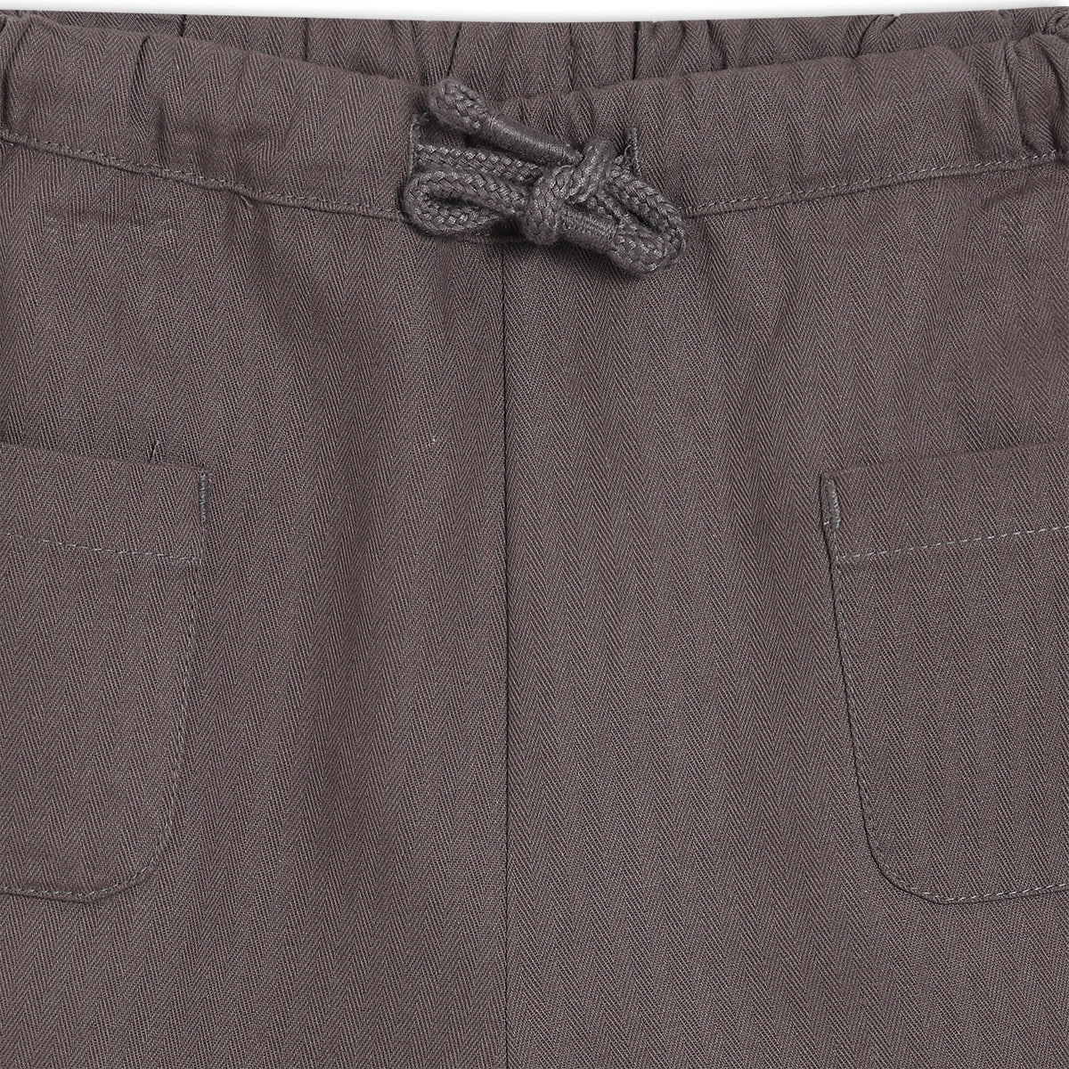 Joggers – Durable herringbone twill trousers in asphalt grey, designed with a fully elasticated waistband, faux drawcord detailing, and handy patch pockets for practicality.