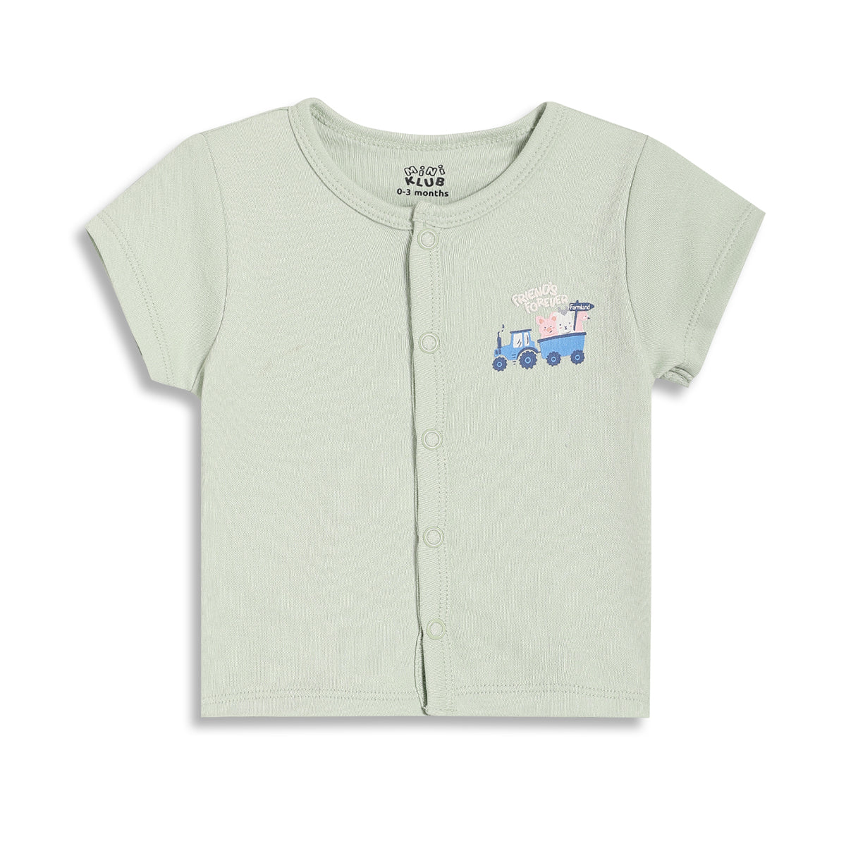 Ensure everyday comfort for your baby with this adorable pack of 2 front open vests. The set includes one cream vest with an all-over tractor print and one sage green vest featuring a cute chest print. Designed for easy wear, these vests come with front snap buttons and a soft, breathable feel, making them ideal for daily use, playtime, or layering.