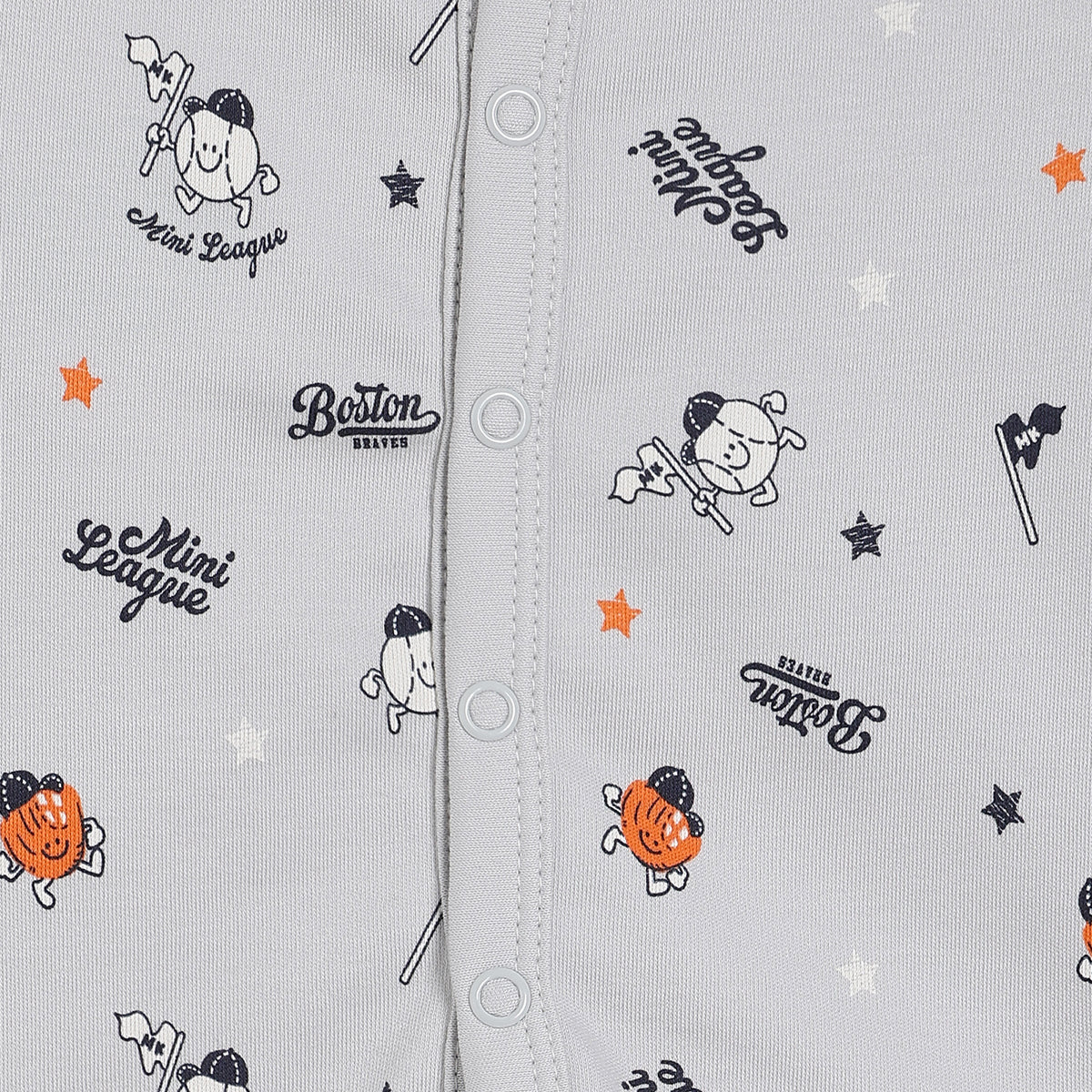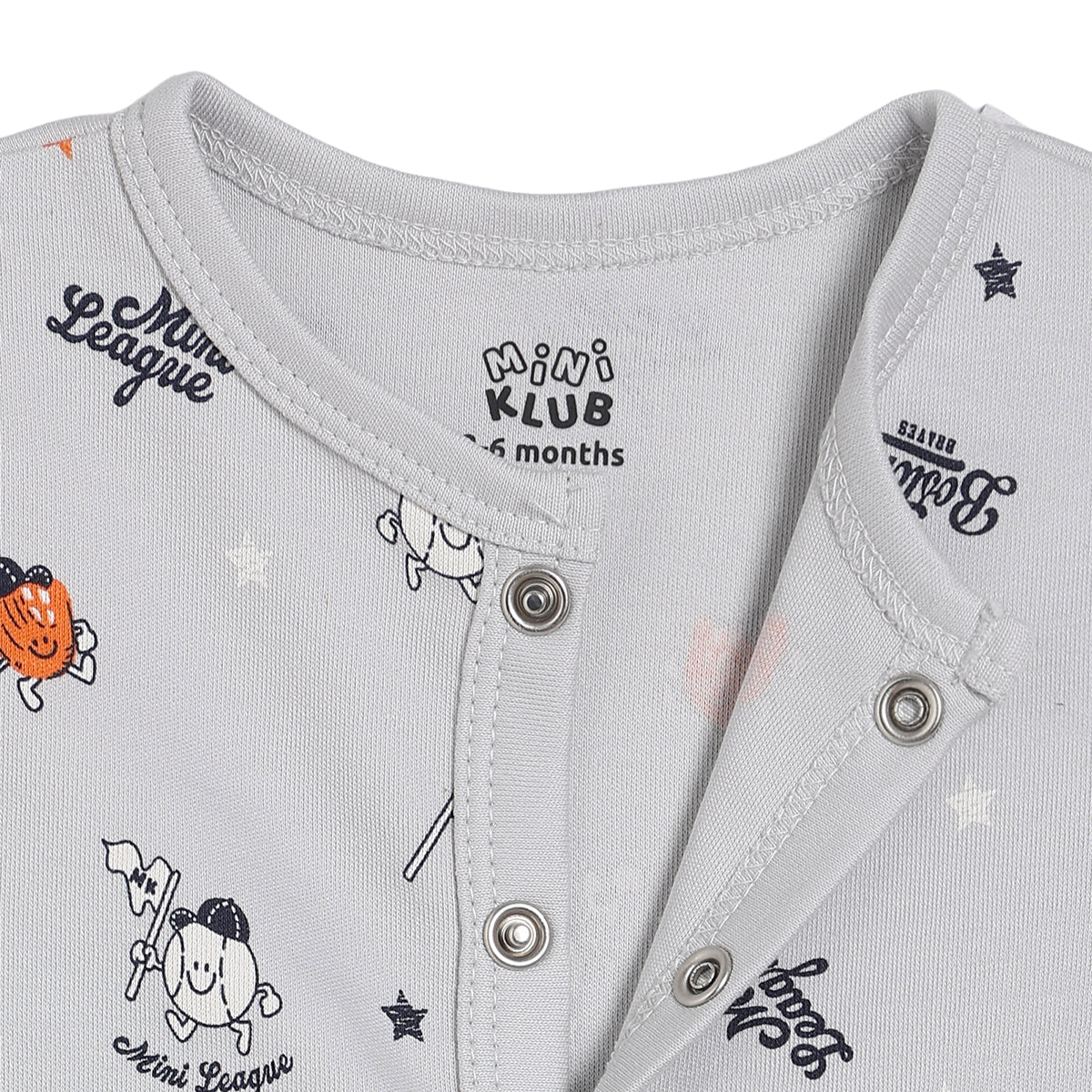 Refresh your little one’s everyday wardrobe with this adorable pack of two Front Open Vest designed for comfort and playful style. One Front Open Vest features classic red and white stripes with a sporty “Mini Champion” chest print, while the other showcases an all-over Mini League inspired print with fun character motifs. Crafted from soft and breathable fabric, these tees keep your baby comfortable throughout the day. The front snap button closure ensures easy dressing, making them perfect for daily wear, playtime, and outings.