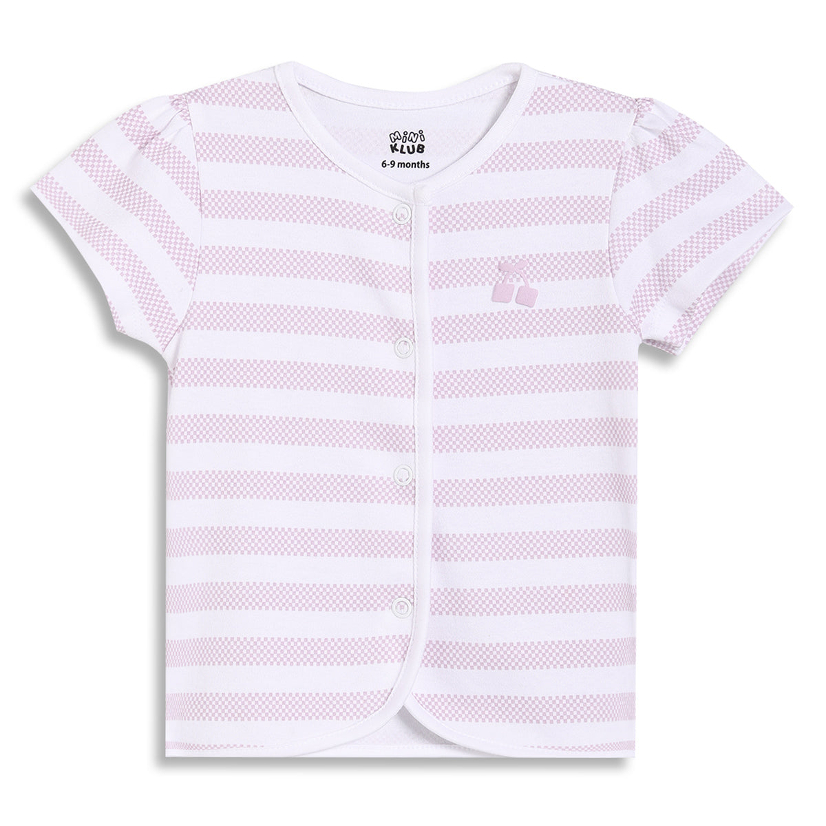Keep your little one comfortable and cute with this pack of two baby girls’ vests designed for everyday wear. One vest comes in a soothing light green shade with an all-over duck print, while the other features a classic white base with soft pink stripes and a tiny bow detail. Crafted with a gentle front button opening, these vests make dressing easy while ensuring all-day comfort for your baby.