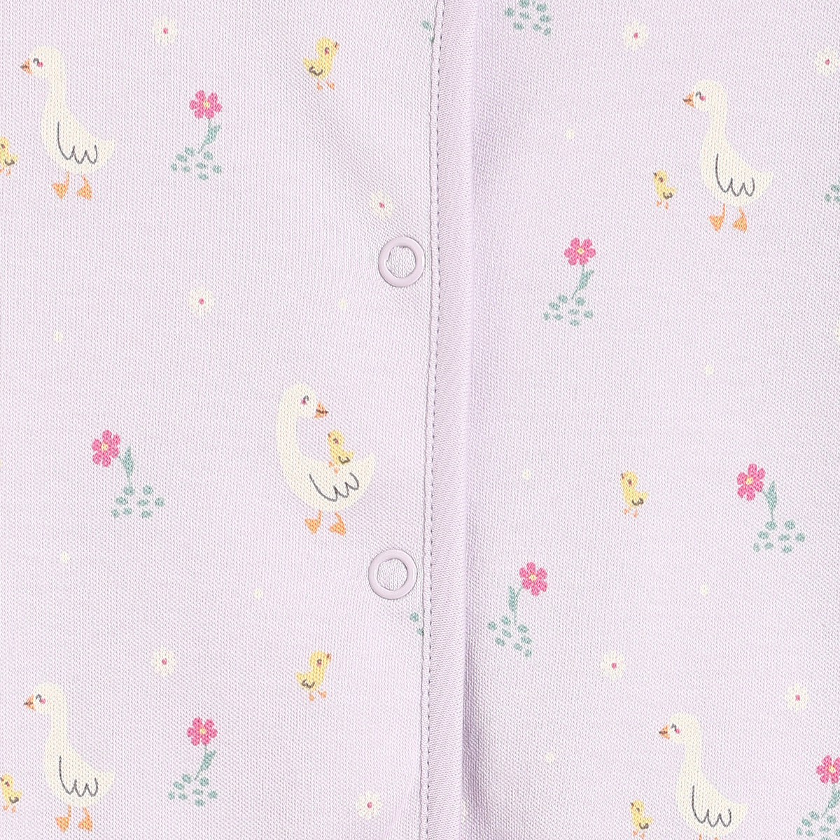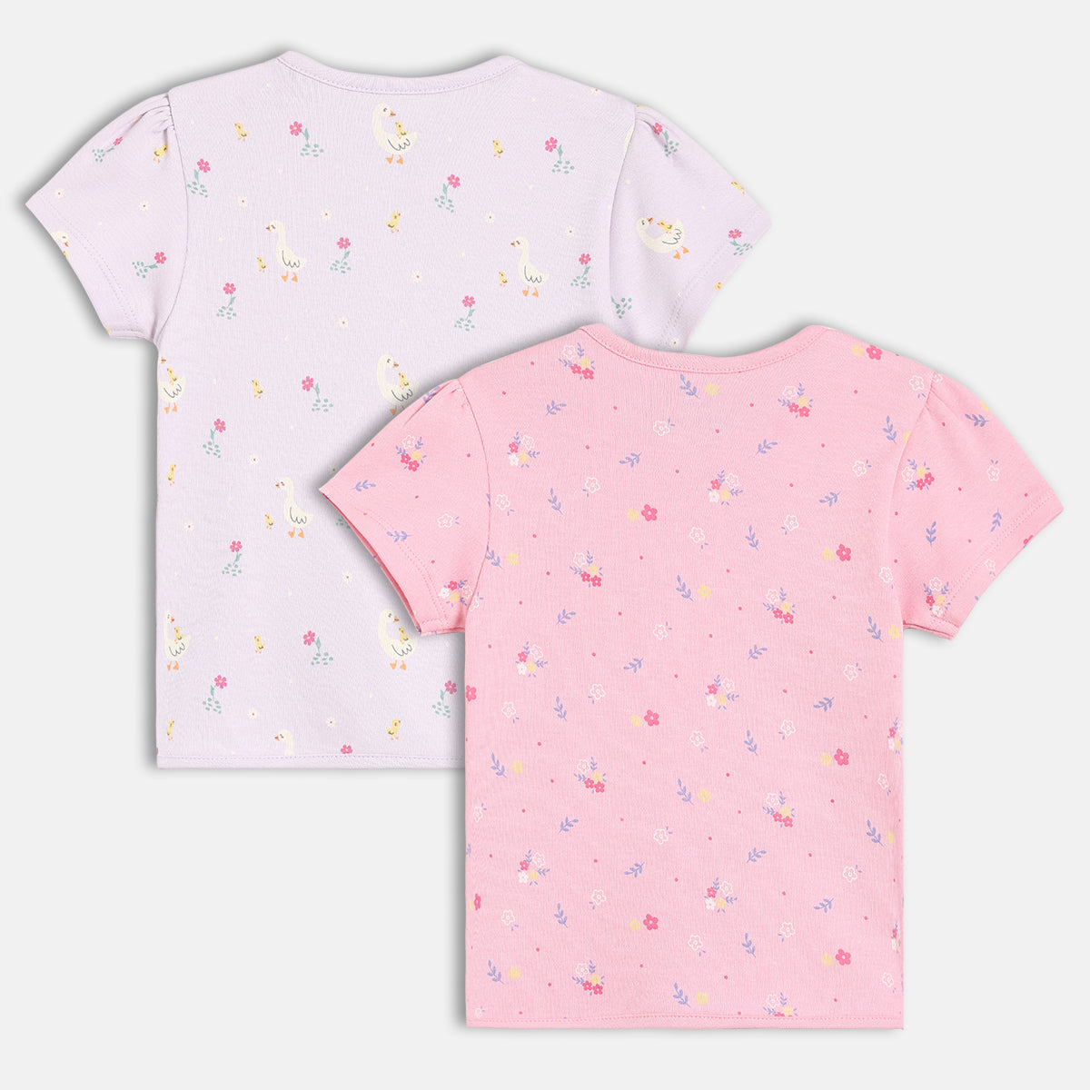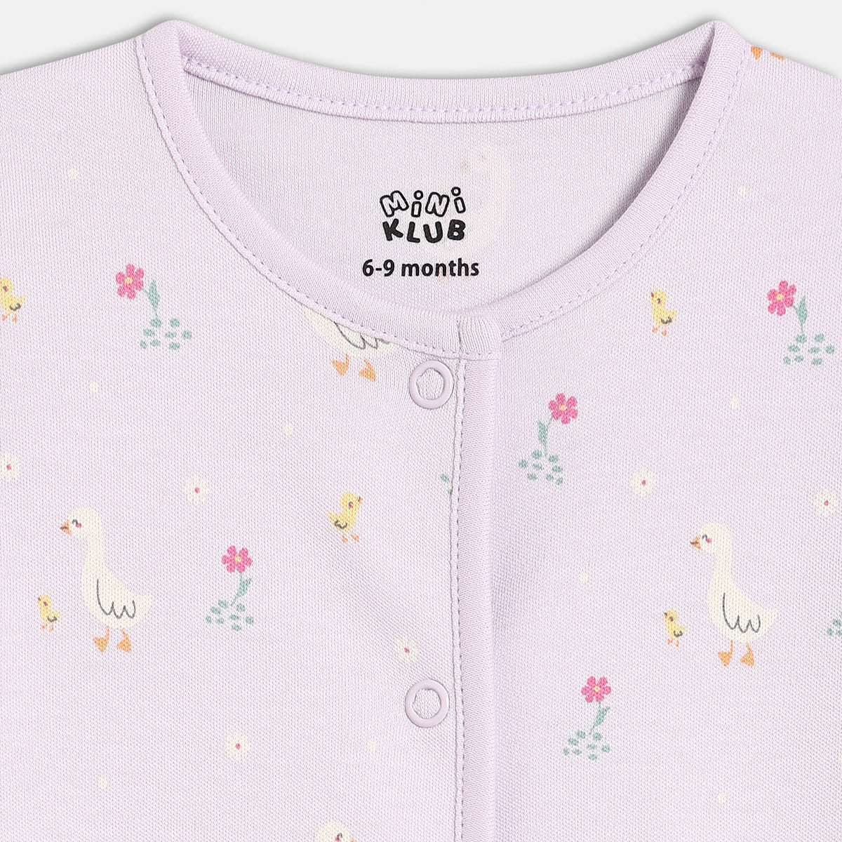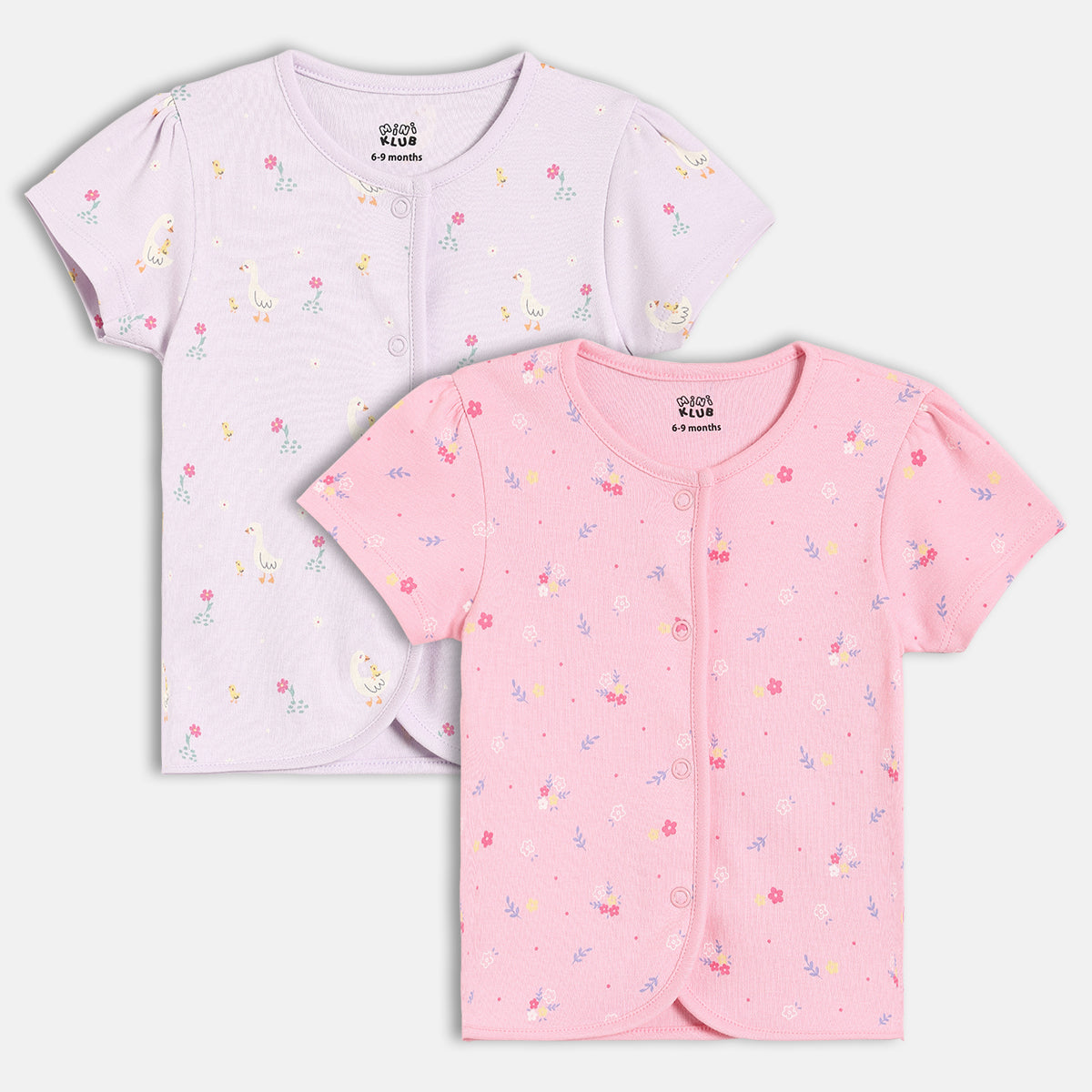 Designed for everyday comfort, this baby girls front open vest pack of two is perfect for gentle, fuss-free dressing. Made from soft and breathable cotton fabric, these vests feature a convenient front snap button opening for easy wear and quick changes. One vest comes in a soothing lavender shade with cute all-over duck and floral prints, while the other is styled in a soft pink base with delicate floral motifs. Ideal for daily wear, these vests can be worn on their own or layered comfortably.