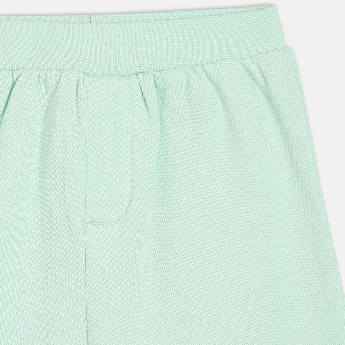 Keep your little one cozy and free to move with this pack of two baby jogger pants. Crafted from 100% cotton fabric, these pants are soft, breathable, and gentle on delicate skin. The set includes one solid mint green pant and one blue pant with an all-over dotted print, adding a fun touch to everyday dressing. Designed in a regular fit with an elastic waistband and cuffed hems, they ensure a secure yet flexible fit for all-day comfort. Perfect for casual outings, playtime, or lounging at home.