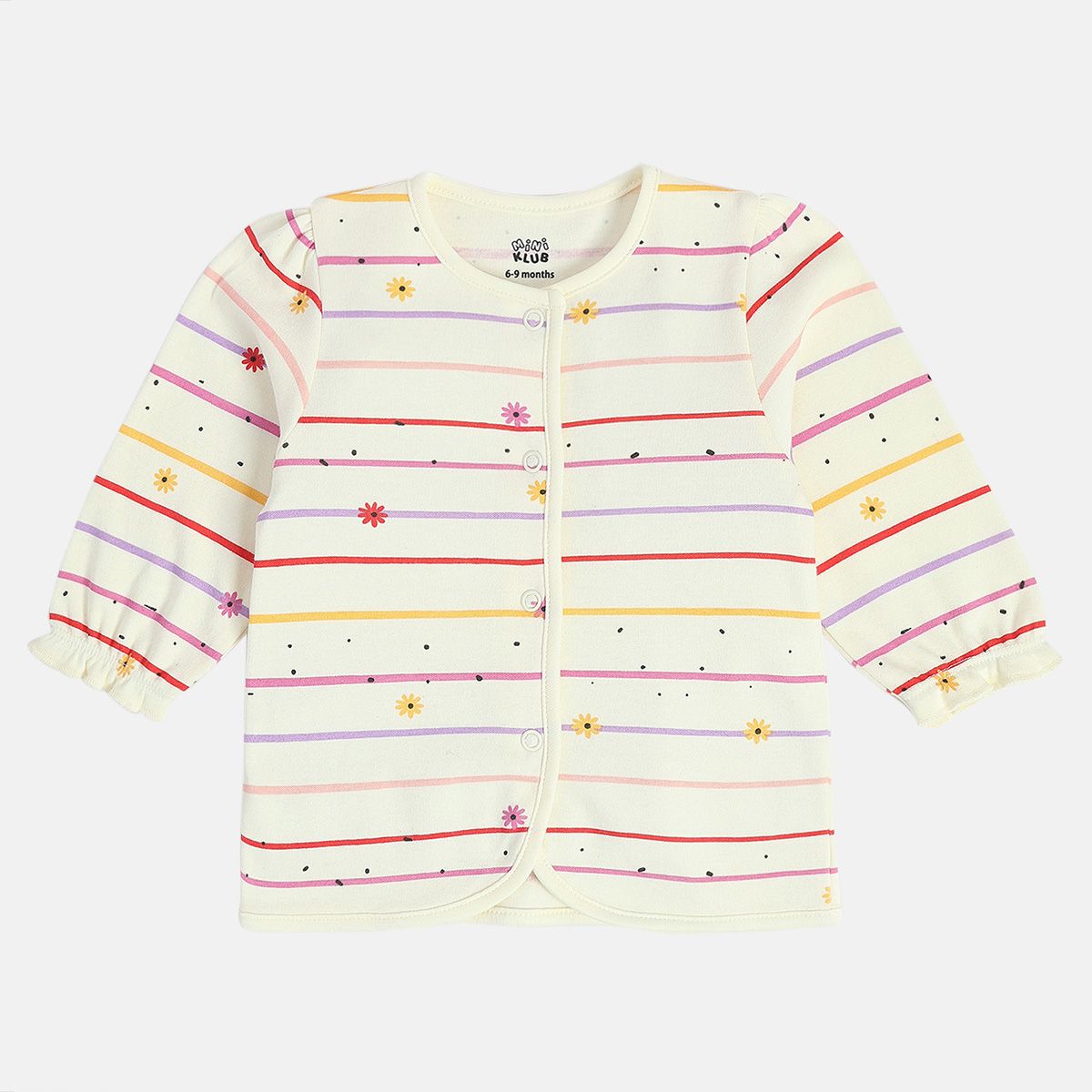 Girls Cotton Pack Of 2 Full Sleeves Rabbit Printed & Striped Front Open Vest - Lavender & White