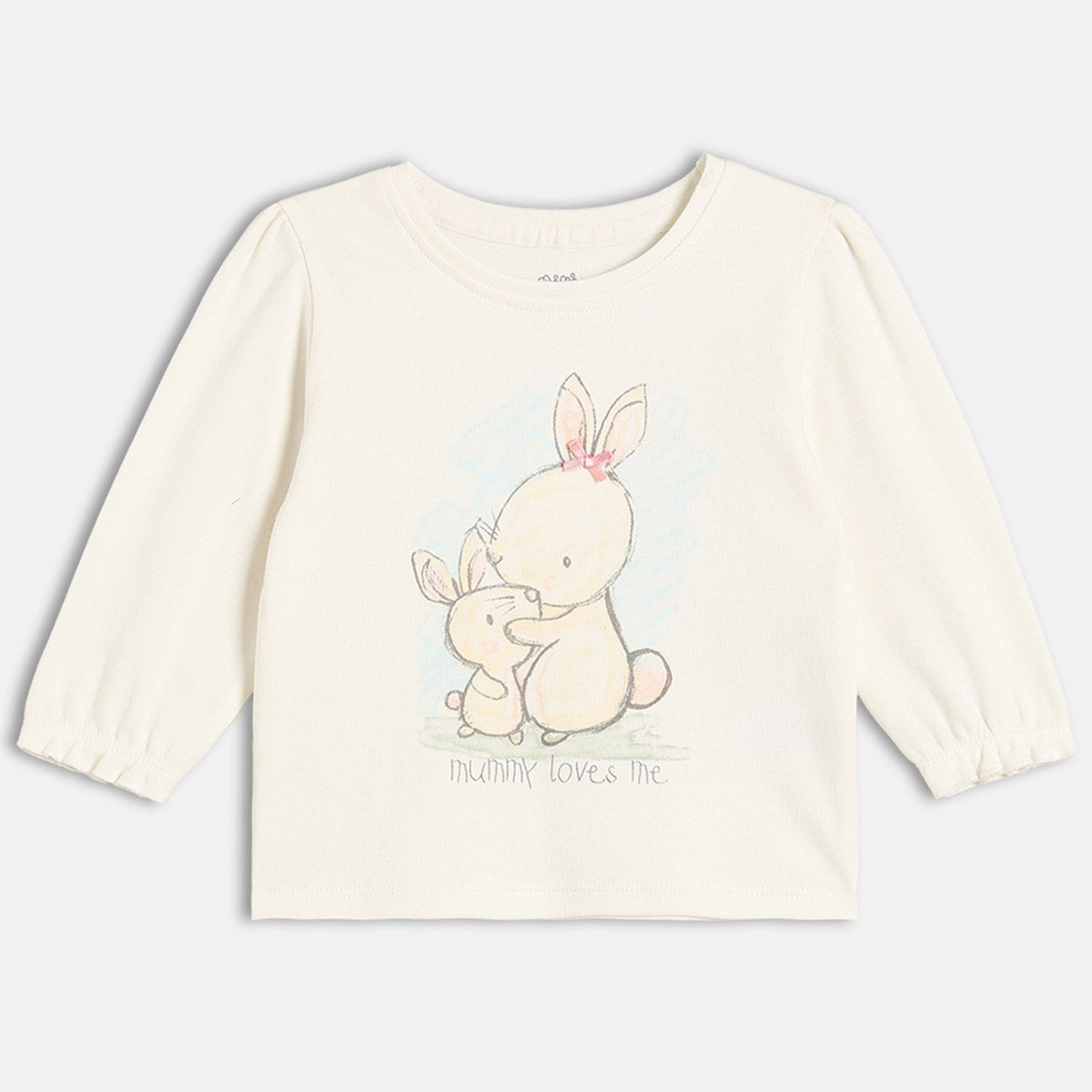 Dress your little one in adorable comfort with this pack of 2 full sleeve tops in cream and mustard hues. Made from soft, breathable cotton, these tops are gentle on delicate baby skin and perfect for everyday wear. The cream top features a sweet bunny print with a “Mummy Loves Me” slogan, while the mustard top showcases a playful all-over print of bunnies and mushrooms. Designed with elasticated cuffs for a snug fit, these tops combine cuteness and comfort effortlessly.