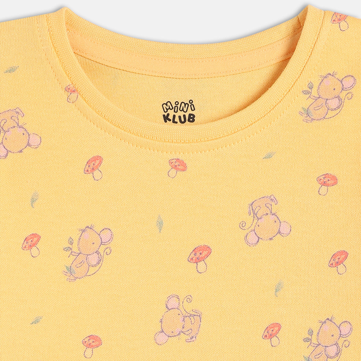 Girls Cotton Pack Of 2 Full Sleeves Animal Printed Knit Tops - Yellow & Off-White