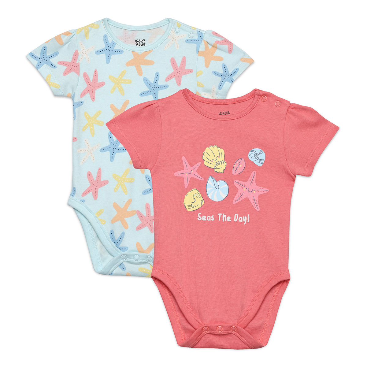 Baby Girls Starfish Printed Bodysuits Pack Of 2, Multicolor