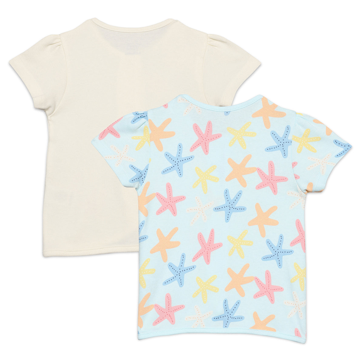Baby Girls Star Fish Printed Front Open Vests Pack Of 2, Multicolor