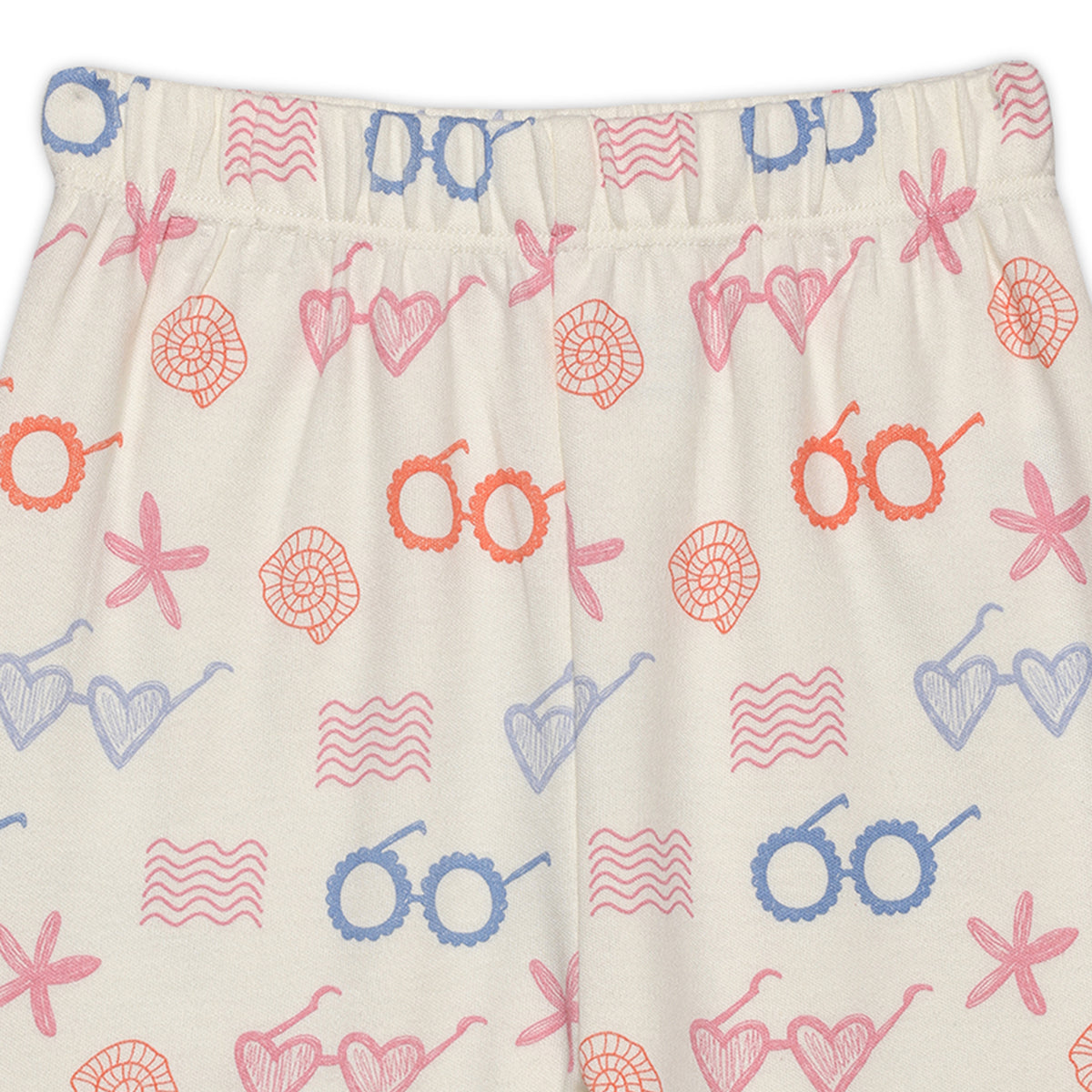 Add a touch of fun and comfort to your baby girl’s everyday wear with this pack of 2 bottoms. Made from soft and breathable cotton fabric, these bottoms ensure all day comfort and easy movement. The pack includes one solid navy pair and one cream pair with adorable beach themed prints like shells, sunglasses, and starfish perfect for a cheerful summer look.