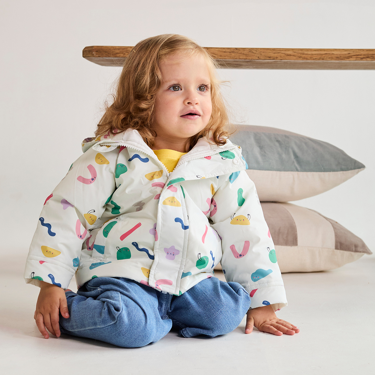 Brighten up chilly days with this playful wiggle printed jacket, designed to keep your little one snug and cosy. Made from a soft, padded fabric, it features a colourful all-over print that adds fun to everyday wear.